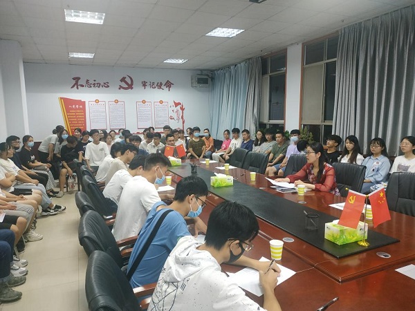 学生第一党支部党员作学习习近平总书记在庆祝中国共产党成立100周年大会上的讲话精神辅导。机关党委、政策与法规办公室、小蓝视频
