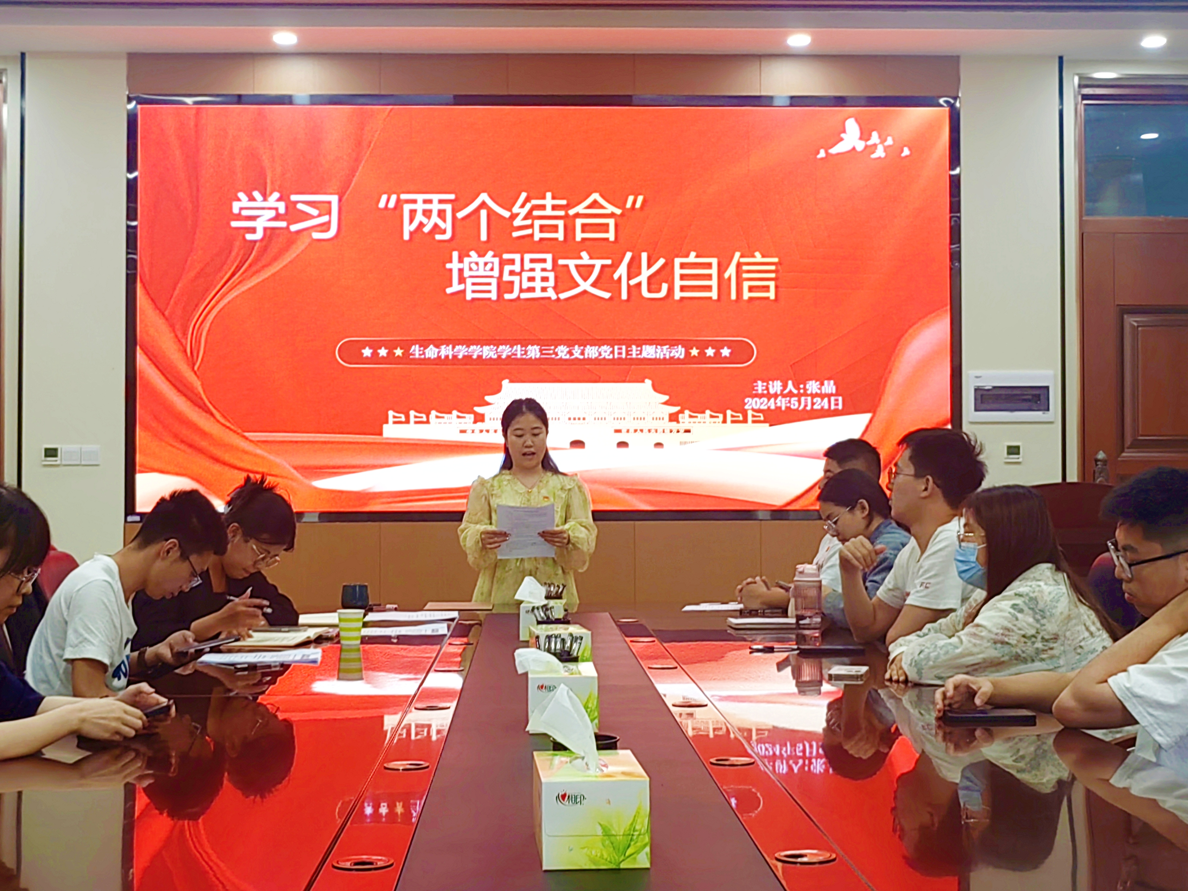 小蓝视频 学生第一、二、三党支部分别以主题视频学习、支部书记讲话、党员交流分享等方式开展了此次主题党日活动。在活动中,各支部党员们结合习近平总书记的讲话,深入学习了何为“两个结合”,深刻理解了增强文化自信的重大意义,明白了坚持“两个结合”的必要性。习近平总书记在庆祝中国共产党成立100周年大会上的讲话鞭辟入里地指出,必须继续推进马克思主义中国化,坚持把马克思主义基本原理同中国具体实际相结合、同中华优秀传统文化相结合。“两个结合”是开辟和发展中国特色社会主义的必由之路,是我们取得成功的最大法宝。在中国革命、建设、改革实践的道路中,“两个结合”研究了新的文化生命体,让马克思主义成为中国的,让中华优秀传统文化成为现代的,为我们铸牢了道路根基,打开了创新空间。