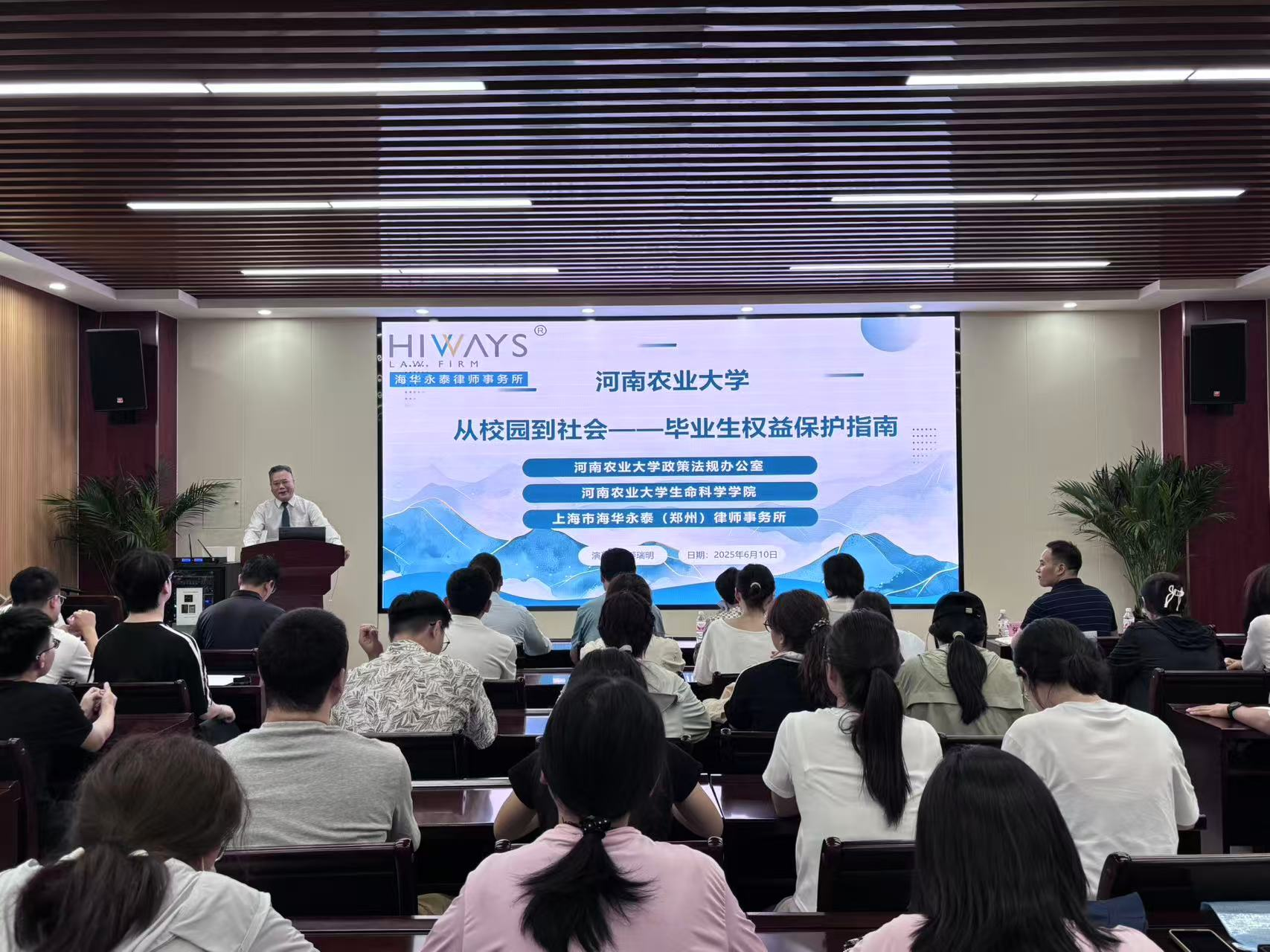 学生党支部与校机关党委党支部、审计政法党支部在龙子湖校区第二实验楼231会议室隆重举行“强化法治意识,做遵规守法模范党员”主题党日活动。校机关党委书记李为、校审计处处长田向阳、校政策法规办公室主任闫俊萍、校政策法规办公室副主任张帅梁、上海市海华永泰(郑州)律师事务所姬瑞明受邀出席。院党委书记刘国兵和各学生支部书记出席会议,2025届全体毕业生党员参加会议,院党委副书记张世昌主持本次会议。