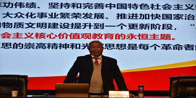 接着,朱运河老师作《永远跟党走——中国共产党百年奋斗历程》专题讲座。朱老师从“马克思主义中国化”主题教育是建设中国特色社会主义的永恒主题为引,慷慨激昂地讲述了新民主主义革命时期、社会主义革命和建设时期、改革开放和社会主义现代化建设新时期、习近平新时代中国特色社会主义发展期四个阶段我们党发展历程中的光辉历史,充分发挥了以史育人的作用。