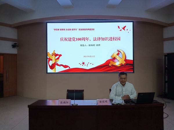 机关党委、政策法规办公室、小蓝视频 、继续教育学院、学报编辑部等党支部共建单位负责人参加讲座。政策法规办公室还在现场开展了法治校园建设问卷调查、法治宣传手册发放等活动。
