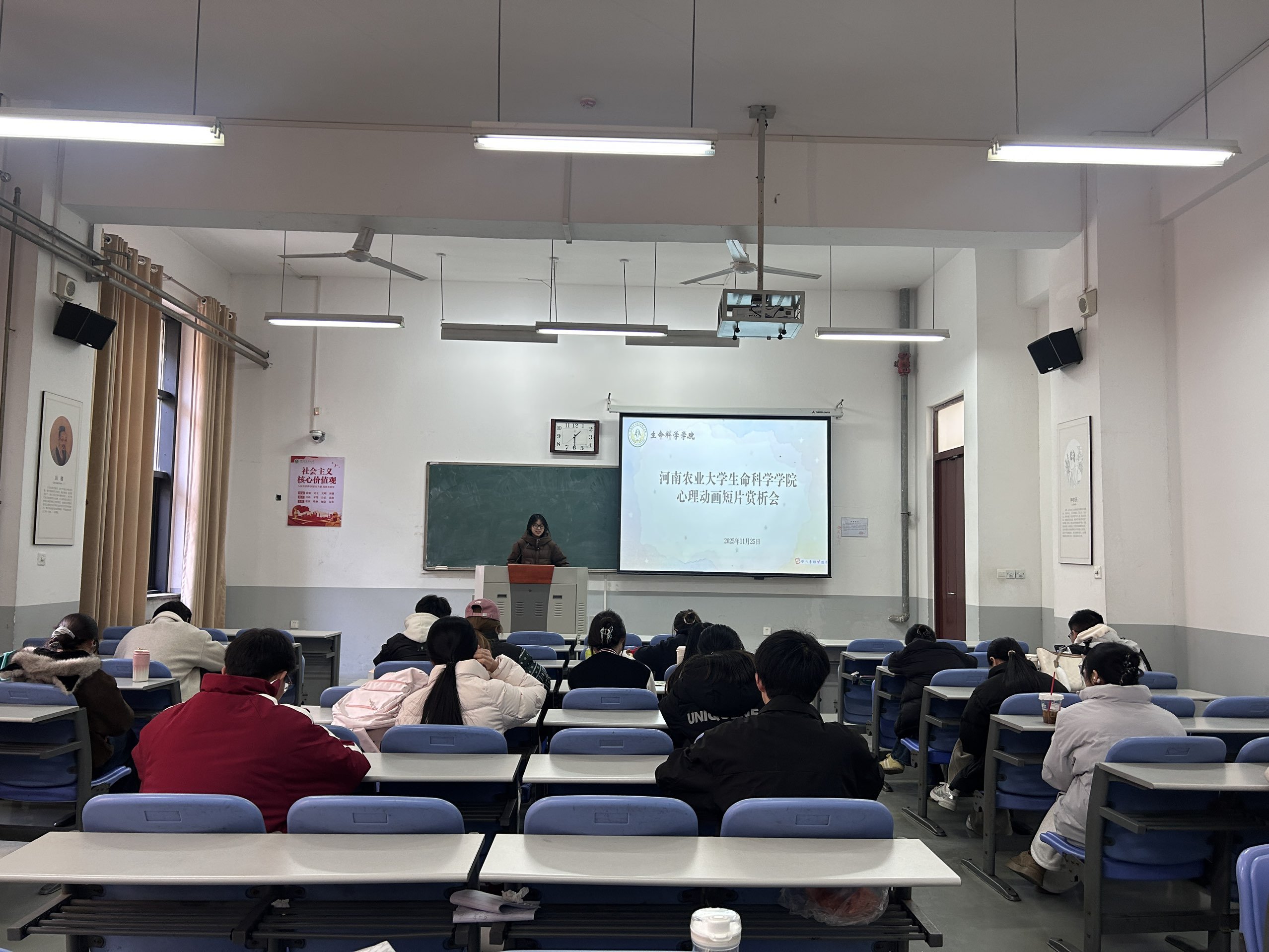 为提升心理委员的朋辈辅导能力与媒介素养,帮助各班级心理委员更好地组织班级心理工作,11月25日下午,小蓝视频 在繁塔楼C110教室组织23、24级心理委员参加心理动画短片赏析会,25级心理委员通过线上资源共享的方式在线观看。