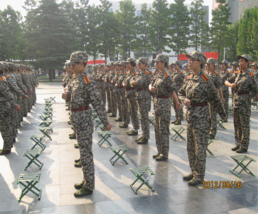 在军训中,高温酷暑给军训工作带来困难,有的学生病倒了,凭借着顽强的意志,稍有好转便坚持训练,有的学生带病仍在坚持训练。教官手把手教,学生认真的学,在军训队列比赛中,方队整齐,精神饱满,步伐矫健,口令准确,声音嘹亮。总而言之,校园里好是一片热闹非凡啊。