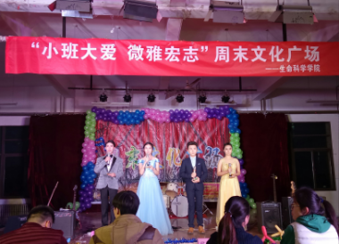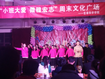 举办以“小班大爱,微雅宏志”为主题周末文化广场。在晚会的准备阶段,我们对周末文化广场进行了的一轮、二轮、三轮的节目审核。最终把这场精彩的晚会呈现给了大家。演员们都精心准备,将自己的才华与努力展现出来。