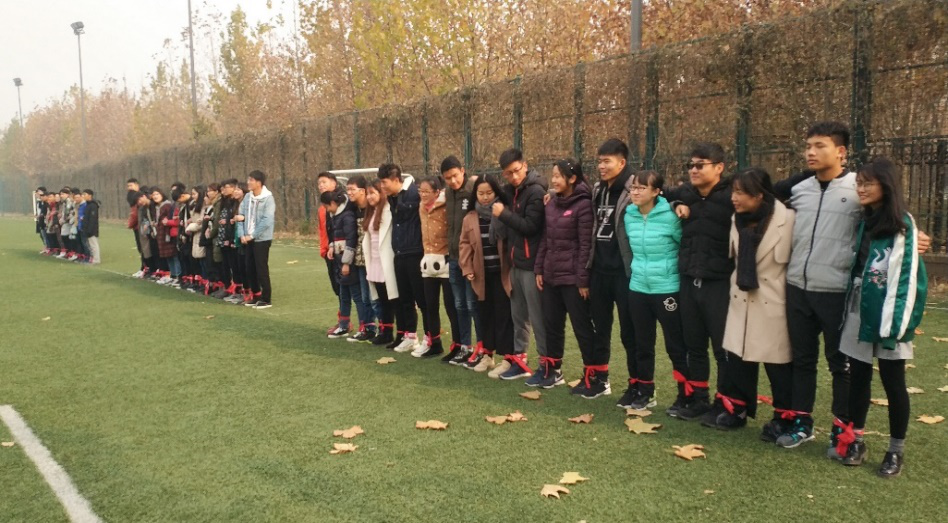 为了贯彻学校“大志、大爱、大雅”的三大教育方针,提高小蓝视频 学生干部之间的凝聚力,拉近大家之间的距离,锻炼大家的团结协作能力,提升大家的身体素质,在12月3日小蓝视频 全体学生会成员在龙子湖校区的足球场举办了一次素质拓展活动。
