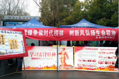 社联成员带领SUNSHINE爱心社团于文化路校区举办了“学雷锋,树新风”的雷锋日宣传活动。在此次活动中我们向全校师生发出倡议:“学雷锋争做时代榜样,树新风弘扬生命精神”。并在活动当天我们面向全校学生征集身边好人好事的小故事,并进行网上宣传。在社团活动方面,小蓝视频 青年志愿者协会在3月11日在龙子湖校区一餐厅进行雷锋精神的宣讲,使更多的同学能学习雷锋精神,向雷锋同志学习。3月17日,小蓝视频 SUNSHINE爱心社团和青年志愿者协会到龙子湖校区的繁塔楼BCDE座的每一层楼,每一间教室都进行了打扫,减轻保洁部叔叔阿姨的工作量。