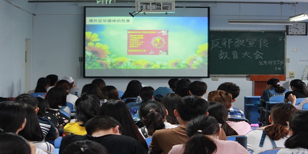 学生了解到了邪教的危害,同时也让大家意识到宣扬反邪教思想、净化校园环境是自己的责任与义务,大家要共同努力维护我们的校园这块同学学习科学文化知识、传播科学思想的净土乐园。