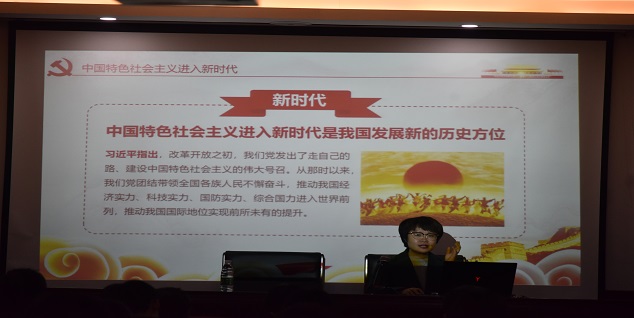 学习课程伊始,在学生们的热烈欢迎下,郭武柯老师首先为同学们介绍了此次理论学习的主题"新时代中国的发展"和"中国共产党的初心”,以便大家明确学习内容,抓住学习重点。接着,郭武柯老师以十九大报告为主线,利用自身丰富的历史知识,以中国特色社会主义进入新时代为起点,系统讲述了新时代中国共产党的历史使命、新时代坚持和中国特色社会主义新时代的十四个基本方略等内容,对十九大报告的新思想、新观点、新论断做出了深入透彻的分析。而后,为了让同学们更加深刻理解十九大报告主题中"不忘初心"的意义,郭武柯老师通过引用经典文化、介绍烈士事迹、结合身边案例,为同学们深刻剖析初心的内含,并提出新时代学生党员要做到坚守初心,要勇于担当责任,要有矢志不渝的政治情怀、要有攻坚克难的无畏气魄、要有为民服务的公仆之心,做到慎欲、慎微、慎独、慎友。课程即将结束之际,郭武柯老师以习主席在参观上海中共一大会址和浙江嘉兴南湖红船时的讲话作为课程结语,并对同学们寄予殷切希望。最后,团委辅导员张晶老师对课程学习做了详细总结,并用习主席对青年学生的寄语作为此次学习活动的结束语,希望同学们系好人生的第一粒纽扣,树立正确的人生观、价值观,将伟大复兴梦与自身实践相结合,坚定地做一名优秀的青马人。