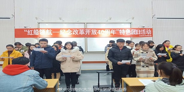 各班同学为此次团日活动做了充分的准备,从构思节目内容到紧张的排练,他们都精益求精,希望用最好的节目向改革开放40周年献礼。12月9日上午九点比赛如期开始。各班按照顺序依次上台表演,参演节目形式丰富多样,生动有趣,包括朗诵、话剧、合唱等。生物工程三班的话剧《五四风云》,节选五四运动这段历史,展现了当时大学生不畏强权、忠心报国的一腔热血,生动形象的表演将同学们带回到了那段的峥嵘岁月。生物工程四班的一首《少年中国说》,以磅礴大气的姿态展示了他们对于祖国的热爱和努力奋进、坚持不懈的追求。生物技术三班的情景剧《穿越2018》将祖国在改革开放40年里的巨大变化呈现在我们眼前,让我们看到我国在党的正确领导下不断前进的脚步。最后,生物技术三班以独具特色的表演风格,极具感染力的表演形式在此次比赛中脱颖而出,并将代表小蓝视频 参加小蓝视频 的团日活动。比赛结束后,冯超老师对各班的表演进行了认真详细的评价,对各班的表演提出了改进的建议,比赛在一片欢声笑语中圆满结束。