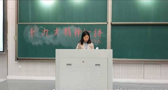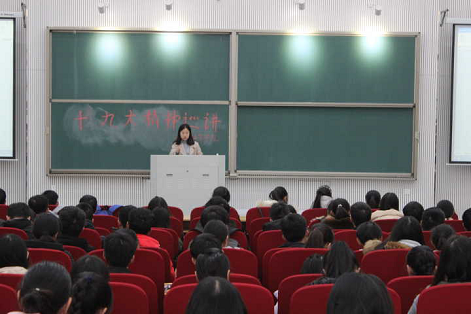 首先,团委老师张晶给同学们讲了十九大的大会主题,指出中国共产党的初心和使命就是为中国人民谋幸福、为中华民族谋复兴,要求每位同学都需把大会主题牢记在心。接着结合社会的发展变化实例向同学们介绍了在我党领导下的过去五年的历史性成就和历史性改革,案例丰富且直观的让同学们感受到国家的发展变化成果。然后根据习近平总书记在十九大报告中关于青年一代最新指示,指出小蓝视频 “大志,大爱,大雅”三大教育方针与十九大中提出青年一代要“有理想,有本领,有担当”深度契合,需要学生在日常的学习生活中积极贯彻落实党的十九大精神。最后对同学们提出学习十九大精神的具体要求,要求同学们要读十九大精神原文、要看主流抓主干、要坚持学而思学而行,并分享了一些学习十九大精神的平台。巡讲结束后现场响起了雷鸣般的掌声,张晶老师的细致讲解,使同学们受益匪浅,无一不流露出为祖国自豪的神情。