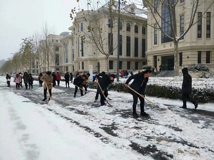 此次扫雪小蓝视频 全面负责学校海棠园和繁塔楼前道路的路面积雪清扫工作,由于地面温度较低,积雪融化速度慢,部分路段路面结冰,加重了积雪清扫负担,凛冽的寒风与零下的低温也使扫雪工作异常艰难。然而,这一切丝毫没有影响到大家工作的热情与效率,在扫除冰雪过程中,同学们利用提供的扫雪工具,顶着寒风,相互扶持,团结协作,经过两个小时的路面清扫,小蓝视频 学生将积雪和冰层全部清扫完毕并集中堆放至道路两旁,为全校师生的安全出行开辟了一条道路。