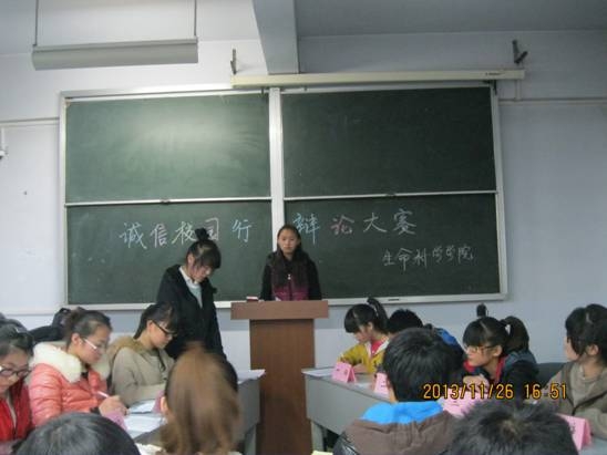 小蓝视频 积极响应学生处号召,于11月26日下午在桃李园成功举办了“诚信校园行”辩论赛院级选拔决赛。