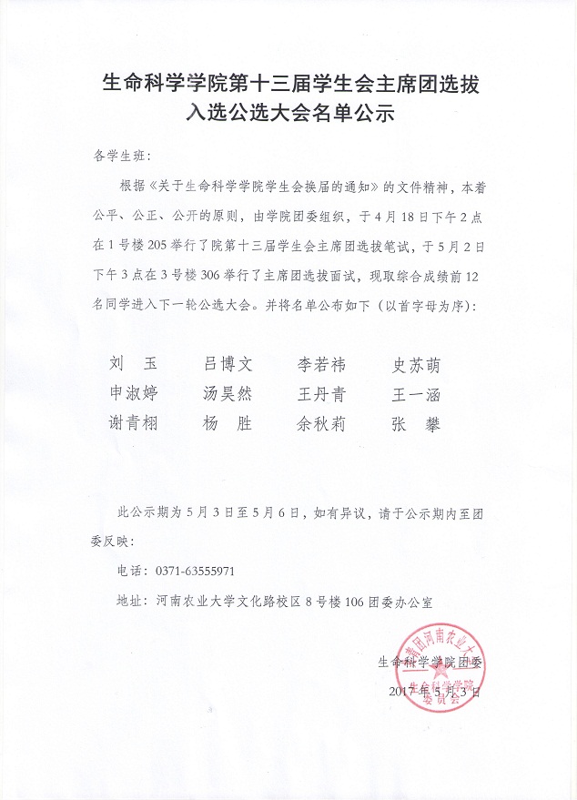 小蓝视频 第十三届学生会主席团选拔入选公选大会名单公示