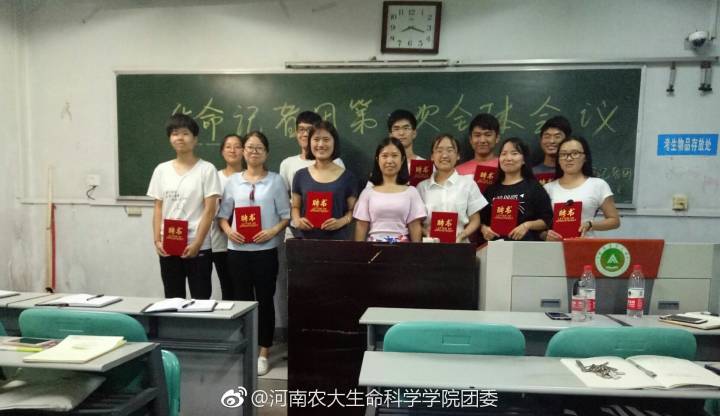 首先,张老师就上个学期以及暑假期间记者团的工作情况发表了自己的感触,表示小蓝视频 官方微博、微信暑期排名在全校范围内一马当先,记者团功不可没,是记者团各位成员辛勤劳动的结果。然后,张老师对新一学期记者团的工作做出展望,提出一下几点要求,一是新闻要有专业性和及时性。鼓励大家在做好本职工作的同时可以参与其他部门活动,全面提高个人能力,增强综合素质。二要保持新闻敏锐性,加强各部门的交流,紧跟时代潮流,加大创新力度,保持小蓝视频 记者团在全校的影响力。接下来,由团长郭鹏超、副团长王一涵、郭胜志、王丹青依次总结发言,分别就各部门近期工作进行安排,要求副部们快速成长,提醒大家新学期有新梦想,带着梦想出发充实生活,鼓励大家全面创新、力争上游。要以全新、积极、认真的态度面对新学期。最后,张老师代表小蓝视频 领导老师给记者团团长、副团长和部长们颁发聘书,并与大家拍照留念表示对他们以往工作的肯定和支持。
