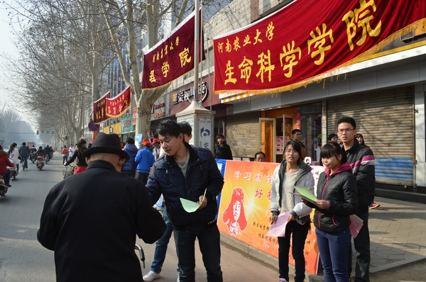在校本部东门摆设宣传摊位,对雷锋精神进行宣传,小蓝视频