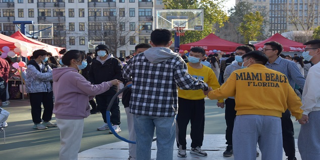 本次趣味运动会以“护航青春成长,礼赞建党百年”为主题,包含“环环相扣”、“趣味投篮”、“无敌风火轮”、“地雷阵”等11个趣味小游戏,旨在引导学生关注心理健康状况,营造健康向上的校园氛围。下午两点,趣味运动会在主持人铿锵有力的致词声中拉开序幕。由小蓝视频 组织的“环环相扣”游戏吸引了众多师生驻足、加入。参与者8人一组,手拉手一字排开,待裁判发起口令后,参与者通过摆动身体将呼啦圈传递给下一位同学,直到呼啦圈被队尾同学以相同方式重新传至首位同学时,游戏结束。参与并耗时最少完成游戏的小组即可前往小蓝视频 大本营领取奖品。小蓝视频 学子热情洋溢,活动现场随处可见其身影。最后,在同学们的欢声笑语中,整个运动会圆满结束。