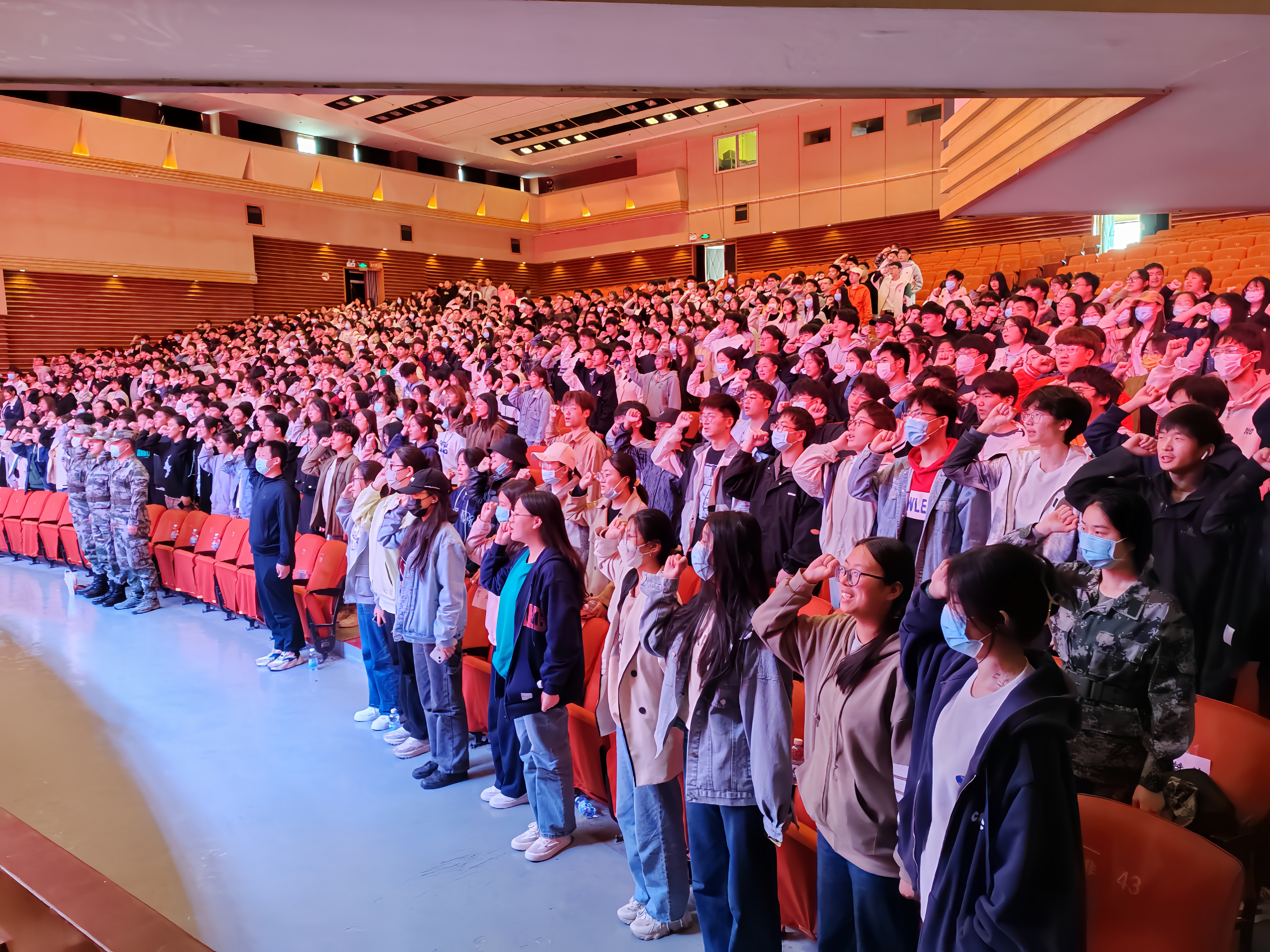 于文化路校区千人大礼堂召开2022级学生军训动员大会。院党委副书记陈明明、党委组织员张晶、辅导员陈子璇出席,军训教官、助班助教及2022级全体学生参与。