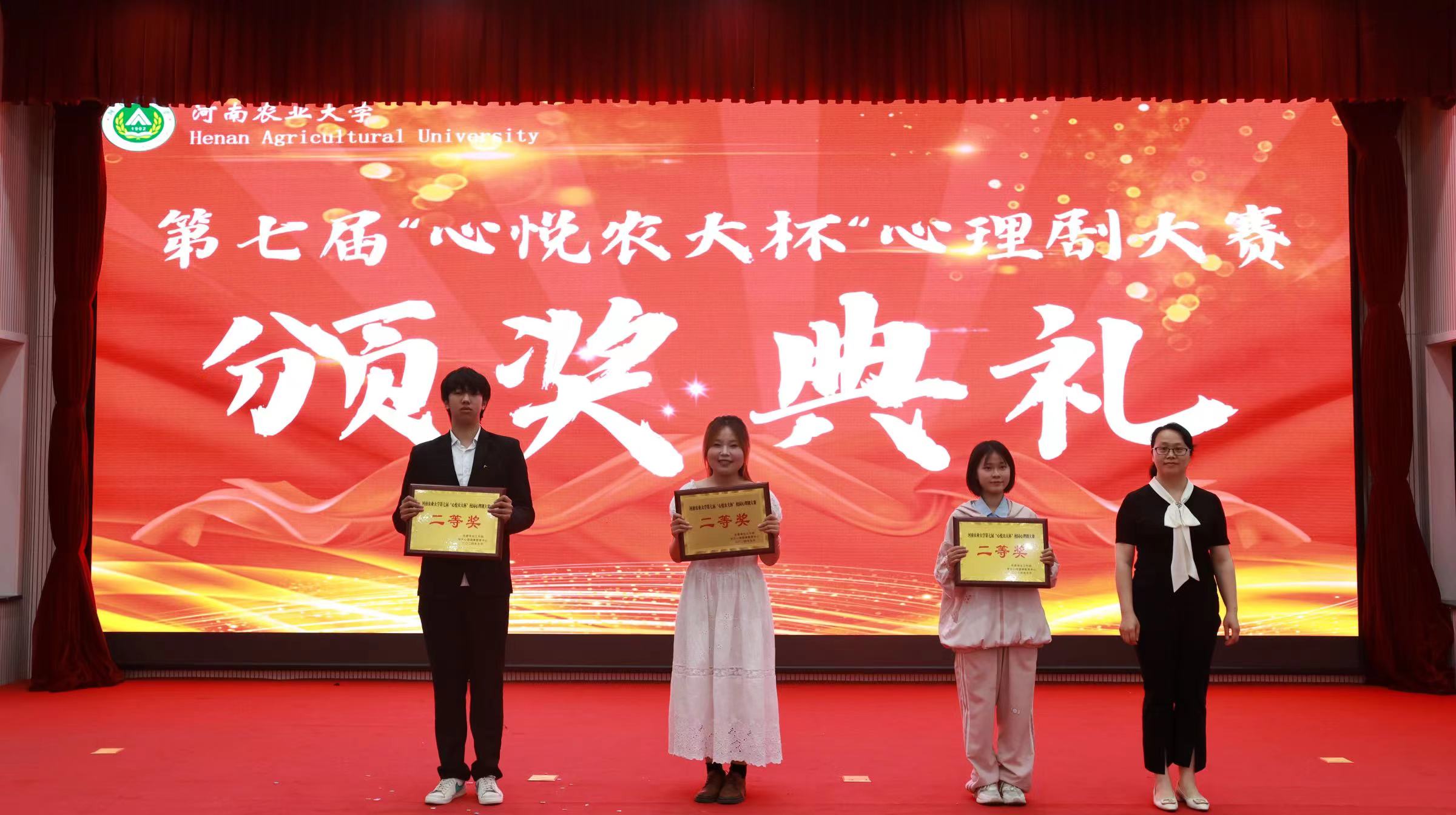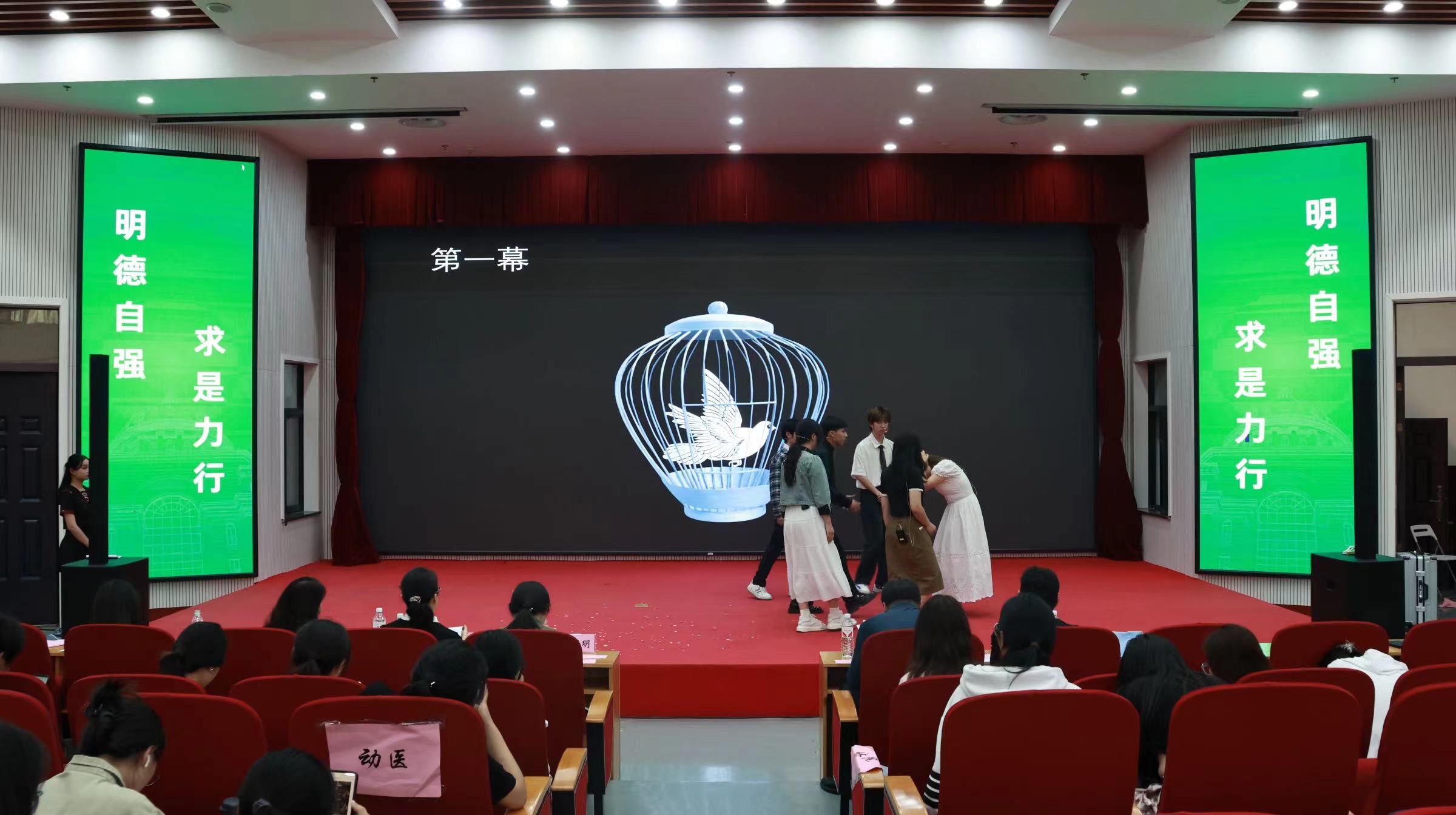 11个剧目表演结束后,评委老师们根据剧本内容、表演风格、舞台效果和思想意义四个内容进行了综合评判。统计成绩间隔时,小蓝视频 学子在场演唱心灵治愈之歌——《有形的翅膀》。颁奖环节,各领导老师为各学院参赛队伍颁发奖项,本次大赛中,小蓝视频 荣获大赛二等奖,小蓝视频 学子孔素莹荣获本次大赛“最佳女主角”称号。