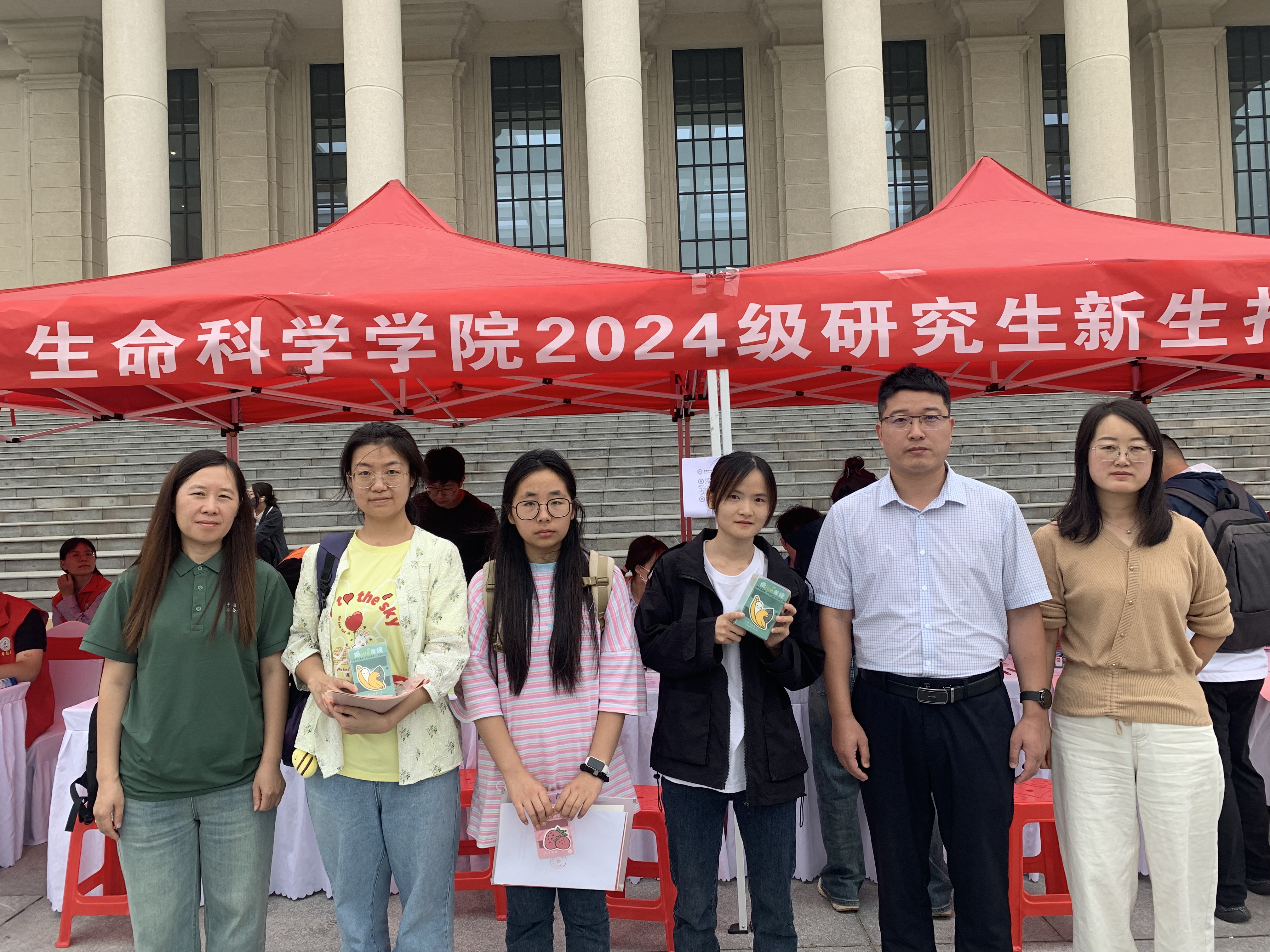 在迎新工作中,学院高度重视,提前安排各项工作,迎新现场氛围欢快热烈,到处洋溢着温暖与关怀。在迎新现场,本科生助班助教和研究生助理帮助2024级新生们收集入学信息、发放一卡通及个人物品等,用耐心与热情为新生搭建起一座座友谊的桥梁。身着统一服装的志愿者们在行李搬运、咨询问答等每个环节都有条不紊,尽力帮助新生同学尽快熟悉大学环境。2024级本科生、研究生新生们满怀期待踏入校园大门,开启他们对生命科学探索的崭新一章。
