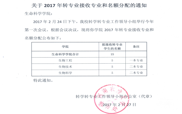 小蓝视频 2017年可以接收转专业的专业及名额分配已得到学校转学转专业工作领导小组办公室的批复,具体如下: