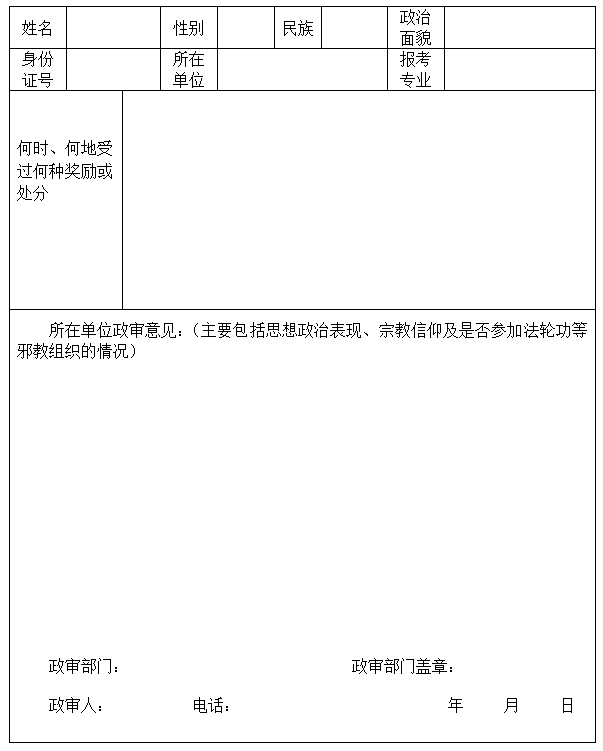 注:1、考生如系应届生,本表由其所在院系填写并盖院系党委(总支)章。