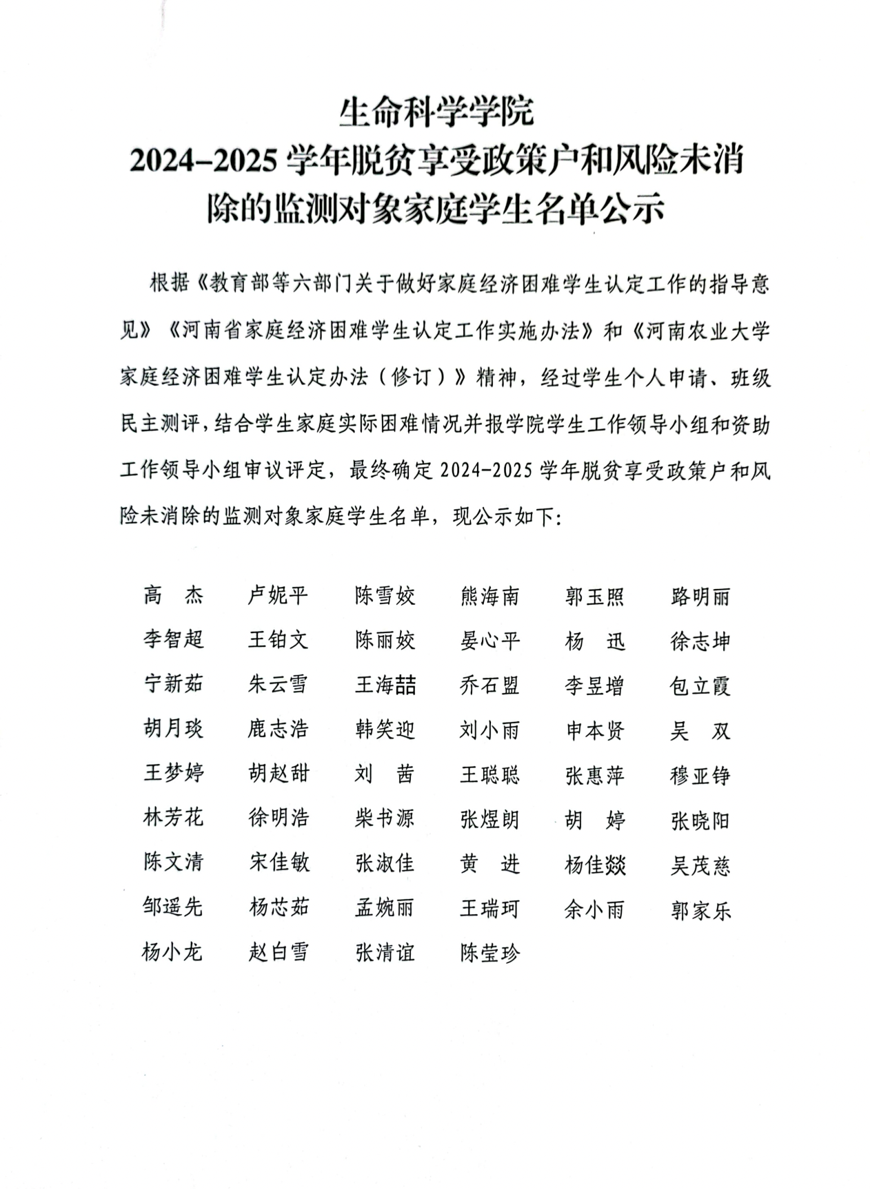 小蓝视频 2024-2025学年脱贫享受政策户和风险未消除的监测对象家庭学生名单公示