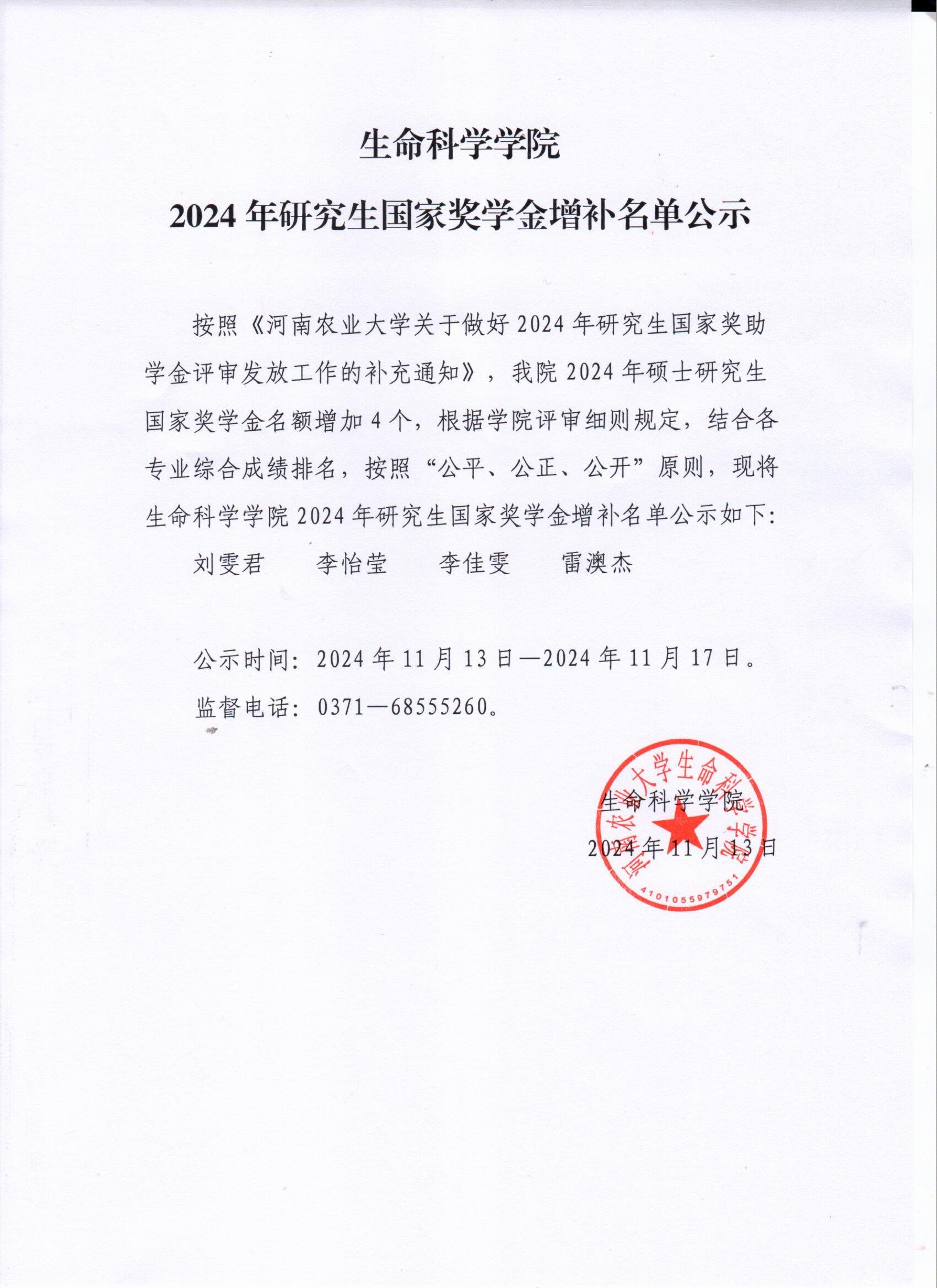 小蓝视频 2024年研究生国家奖学金增补名单公示