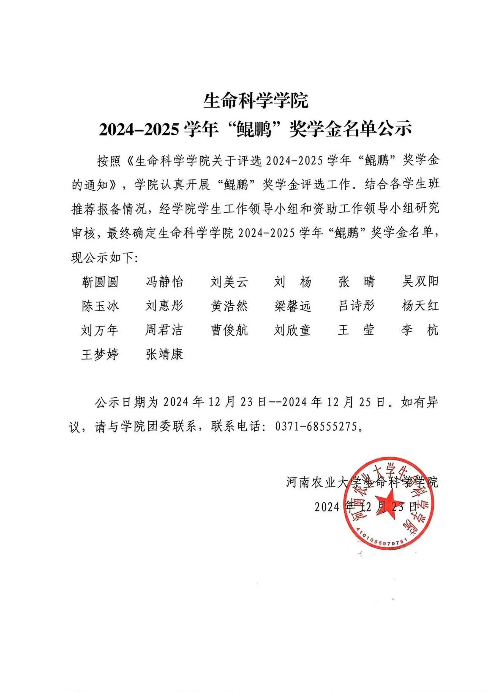 小蓝视频 2024-2025学年"鲲鹏"奖学金名单公示