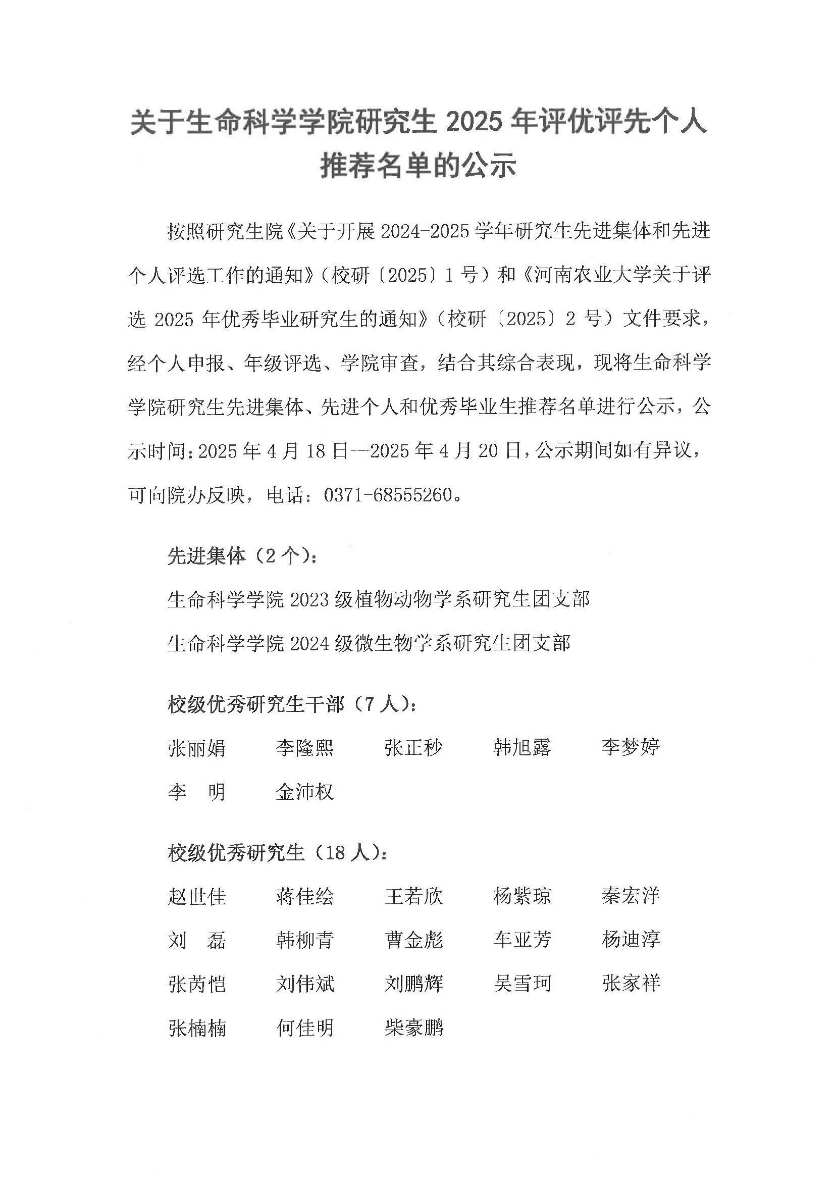 关于小蓝视频 研究生2025年评优评先个人推荐名单的公示