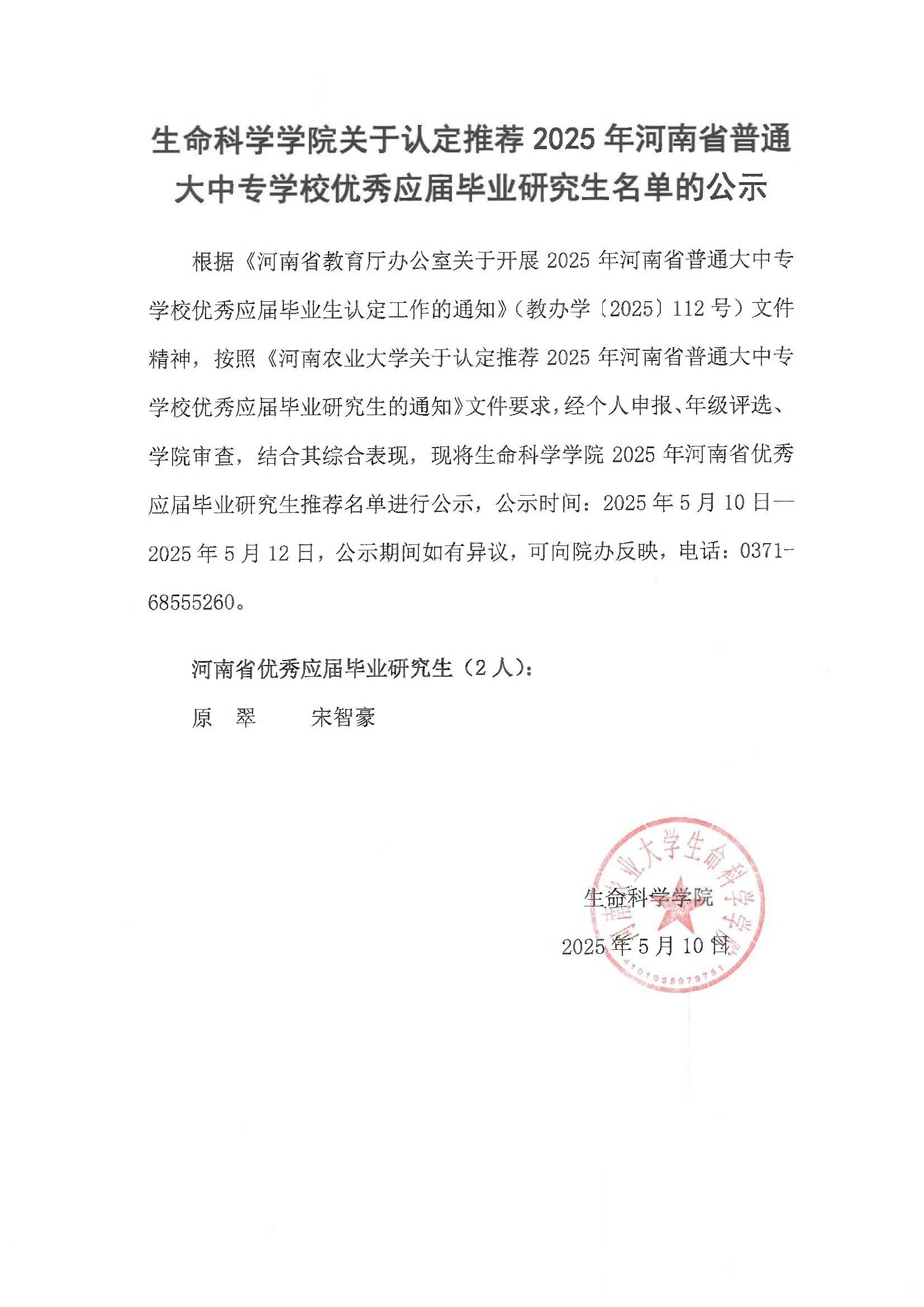 小蓝视频 关于认定推荐2025年河南省普通大中专学校优秀应届毕业研究生名单的公示