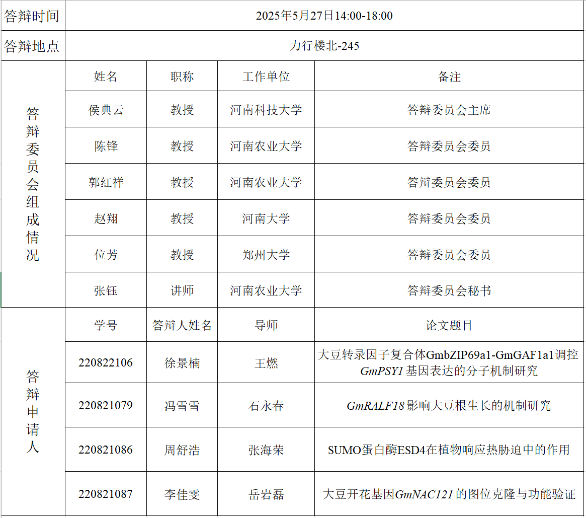 2025年上半年生物化学与分子生物学硕士研究生毕业答辩公告(三)