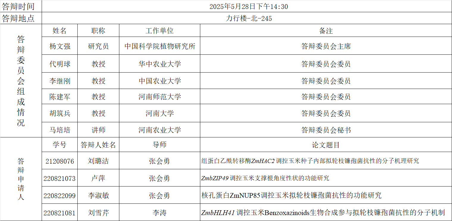 2025年上半年细胞生物学硕士研究生毕业答辩公告(二)