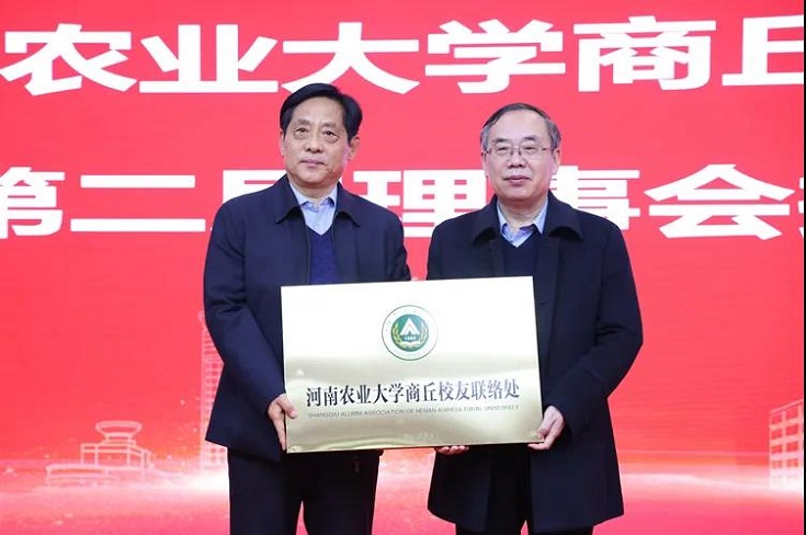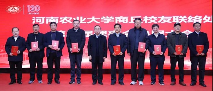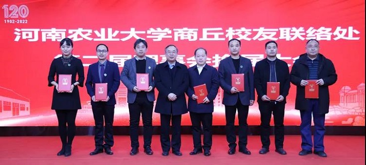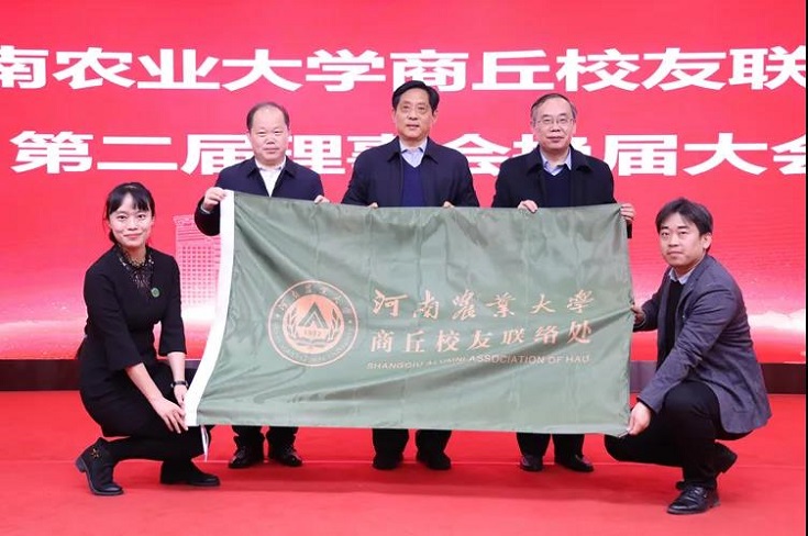 校友会商丘校友联络处第二届理事会成员。尚富德为理事会成员颁发了聘书,向新一届商丘校友组织授牌和授旗。小蓝视频