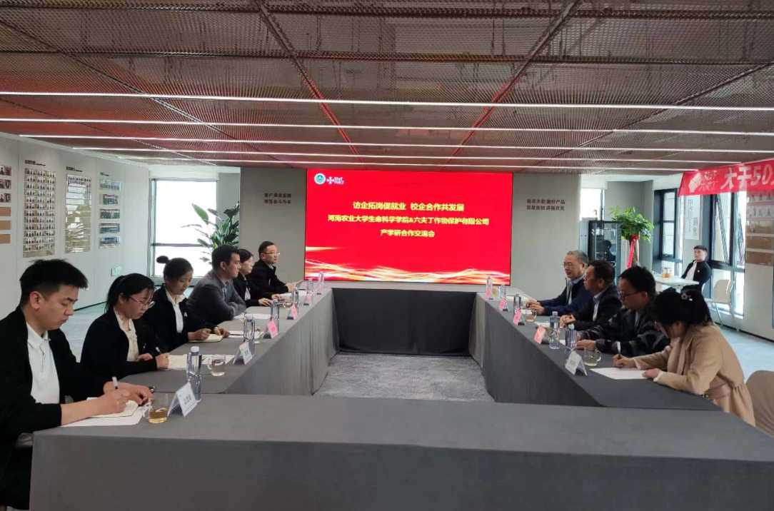 党委书记刘国兵、院长吴建宇,及院团委书记刘展、生化系主任王潇然、徐玉芳老师一行前往六夫丁作物保护有限公司开展合作交流。六夫丁公司董事长陈诺、营销服务中心总监李亚辉及相关职能部门负责人参与交流。