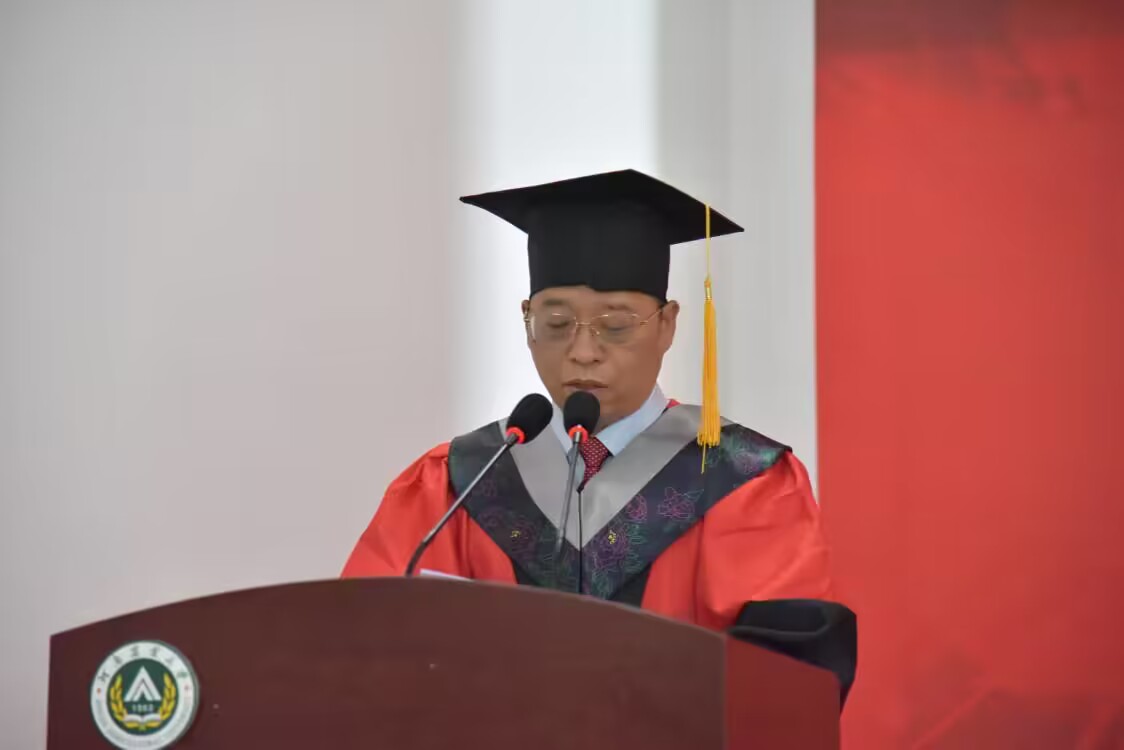 吴建宇代表学院向圆满完成学业的毕业生表示热烈的祝贺,并向为同学们倾注心血和无私奉献的老师们、家长们表达崇高的敬意。他向毕业生提出了三点嘱咐和希望:一是向上生长,用青春的智慧去拥抱新时代,做勇于自我创新的开拓者;二是向下扎根,用青春的跋涉去探索新时代,做始终奋力奔跑的追梦者;三是向内砥砺,用青春的坚定去融入新时代,做始终孜孜以求的奋进者。他希望同学们无论何时,都能够坚守自己的理想和信念,努力摆正心态、坚定目标,做到向上生长,向下扎根,向内砥砺,要“怀抱梦想又脚踏实地,敢想敢为又善作善成,立志做有理想、敢担当、能吃苦、肯奋斗的新时代好青年。秉承“格物正心,秉志求真”的院训,在青春的跑道上不负韶华,不负时代,勇攀高峰!