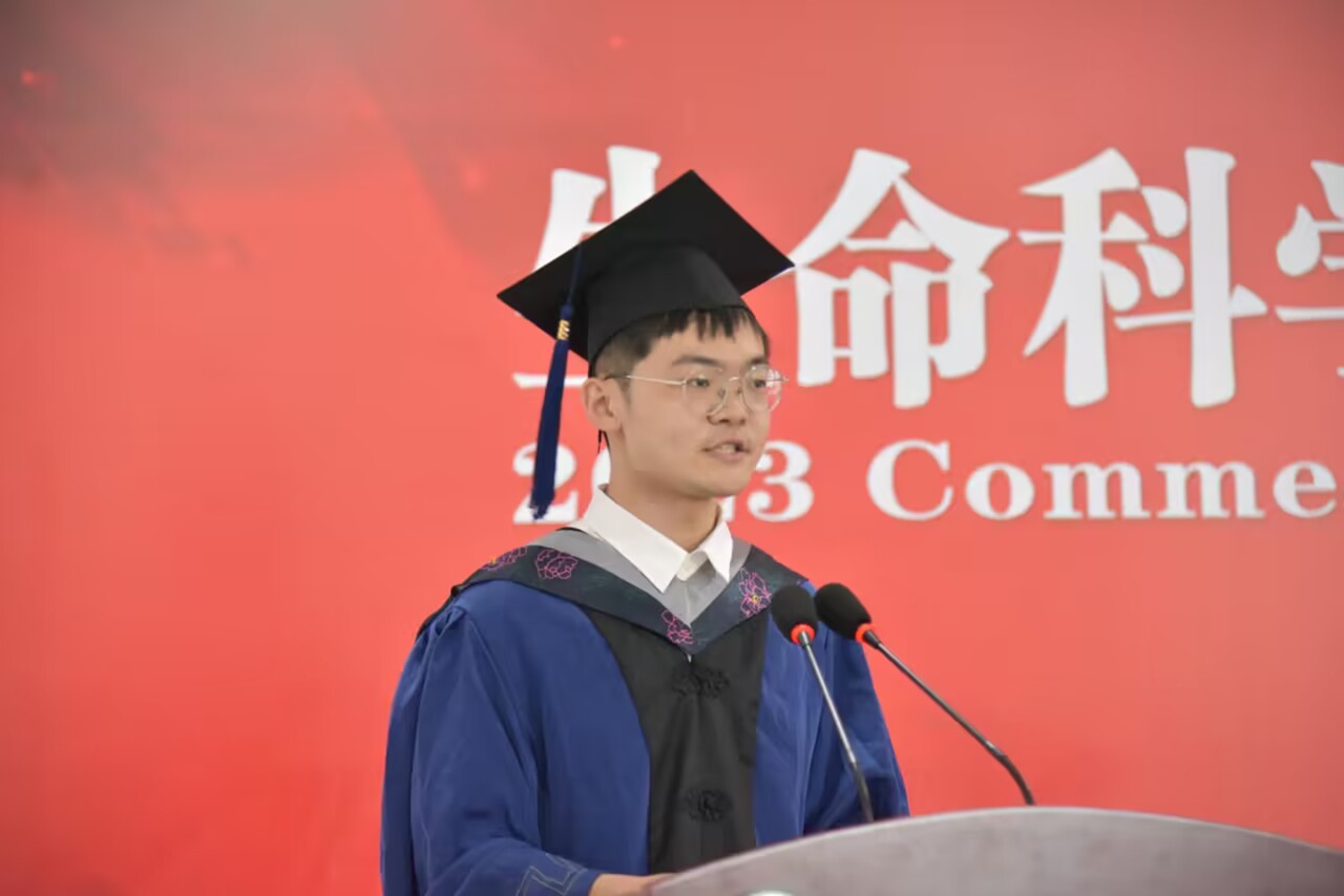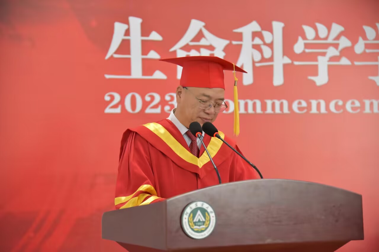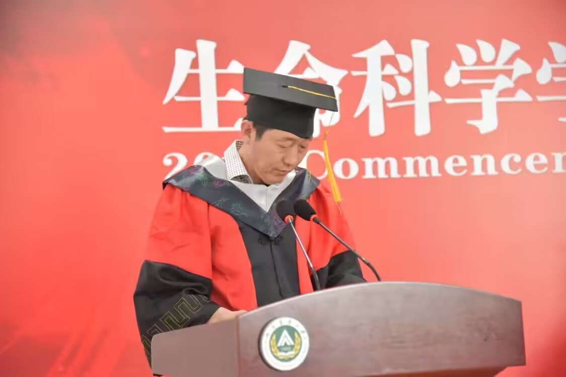 毕业研究生代表刘子豪同学发言,在农大学习生活的经历始终是他一生最可宝贵的财富和不竭的动力源泉,激励着他在平凡中坚守初心、砥砺奋进。他希望毕业生们坚持梦想、不忘初心,注重细节、精益求精,勇挑重担、心怀家国。历经坎坷,耐得住平凡寂寞,收获成功,亦能够永葆初心。最后他号召全体毕业生:“让我们相约下一个十年、二十年校庆再相见时,以优异的成绩骄傲地向母校报告!”