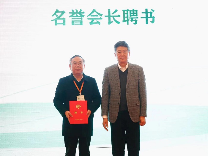 中国花卉协会副会长赵良平为尚富德教授颁发聘书