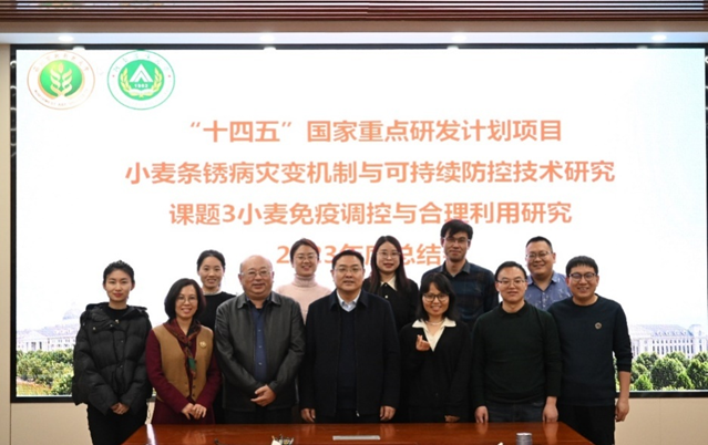 本网讯(通讯员 李俊香)2024年1月6日下午,“十四五”国家重点研发计划项目“小麦条锈病灾变机制与可持续防控技术研究”课题3“小麦免疫调控与合理利用研究(2021YFD1401003)”2023年工作总结会在小蓝视频