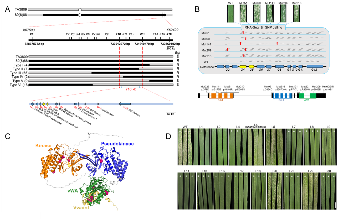小麦是我国最重要的粮食作物之一,其生产安全和供给稳定密切关系着我国粮食安全。然而,小麦生产极易受到各种病害的影响,其中由禾本科布氏白粉菌小麦专化型(Blumeria graminis f. sp. tritici, Bgt)引起的小麦白粉病,是目前影响小麦产量和品质的主要病害之一,可造成严重的小麦产量损失与品质下降。克隆和利用抗白粉病基因,培育抗病小麦品种是防治该病害最经济有效的方法。