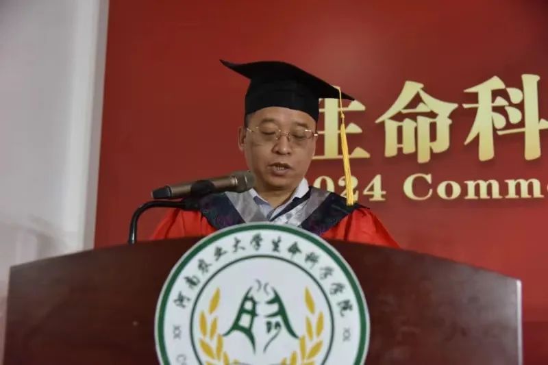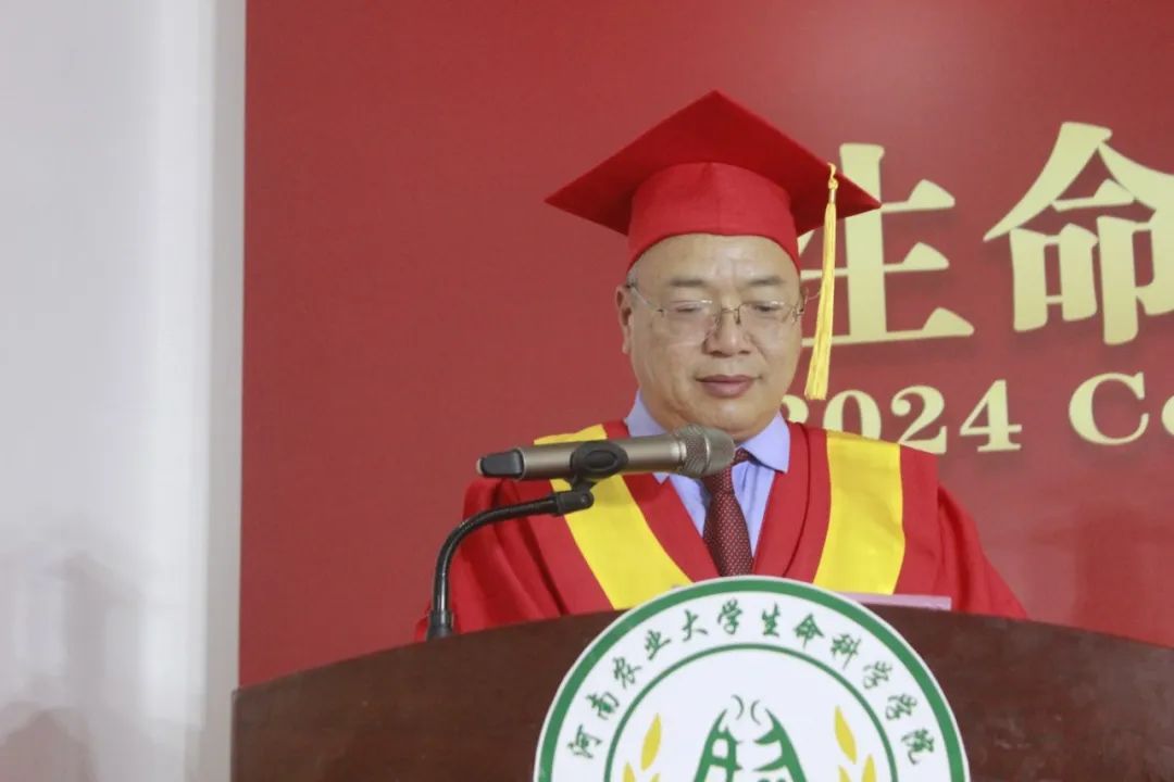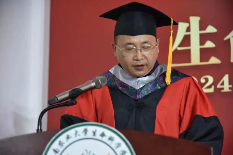 微生物学系副主任杨森教授发言,他对全体毕业生表达了殷切的祝愿,劝告大家珍惜过往,不忘初心;百折不挠,勇于拼搏;实事求是,坚守良知;全面发展,劳逸结合,在以后的生活中鹏程万里,在新的岗位上书写人生精彩新篇章!