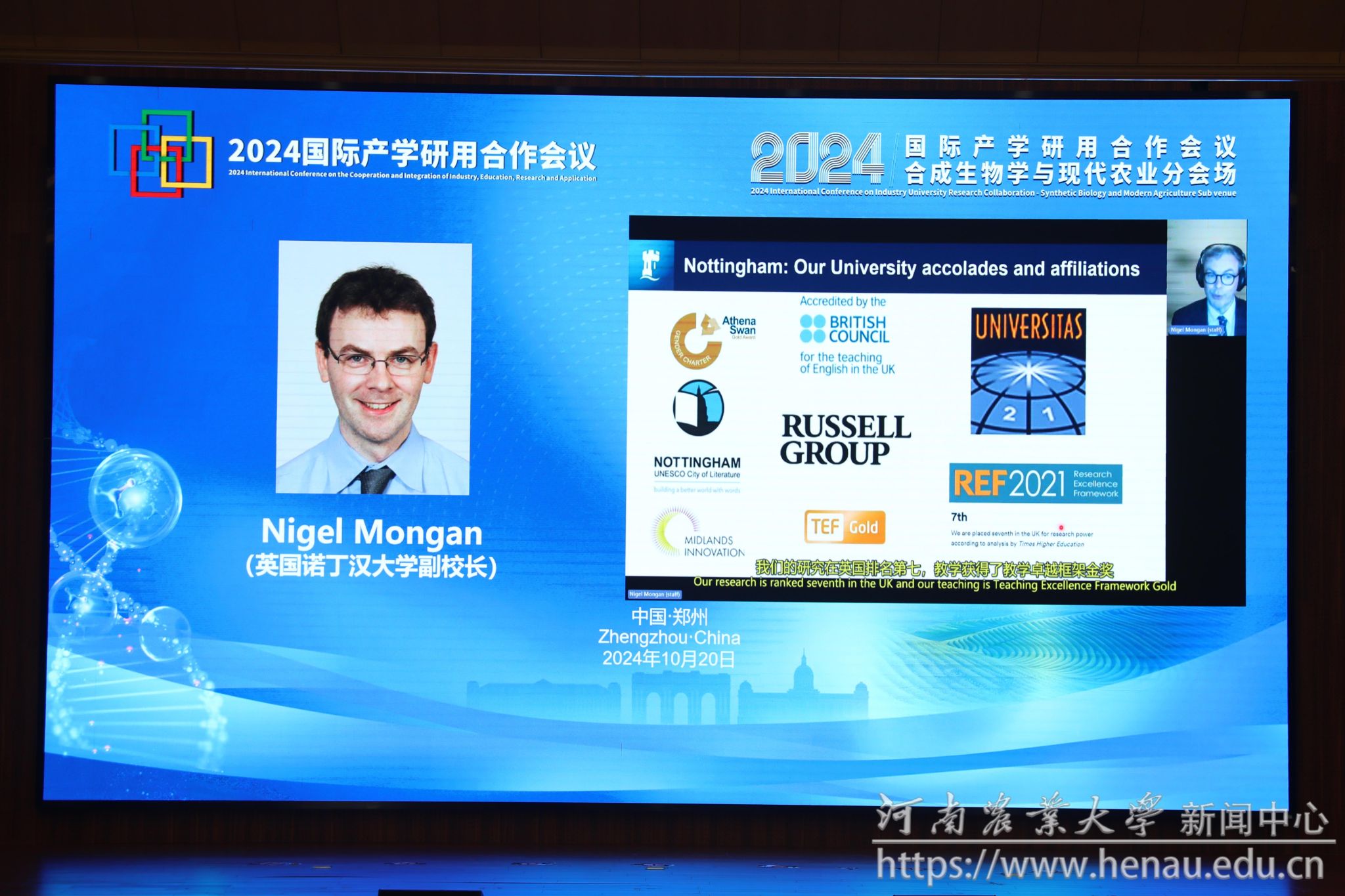 英国诺丁汉大学副校长奈杰尔·蒙加恩以线上形式致辞