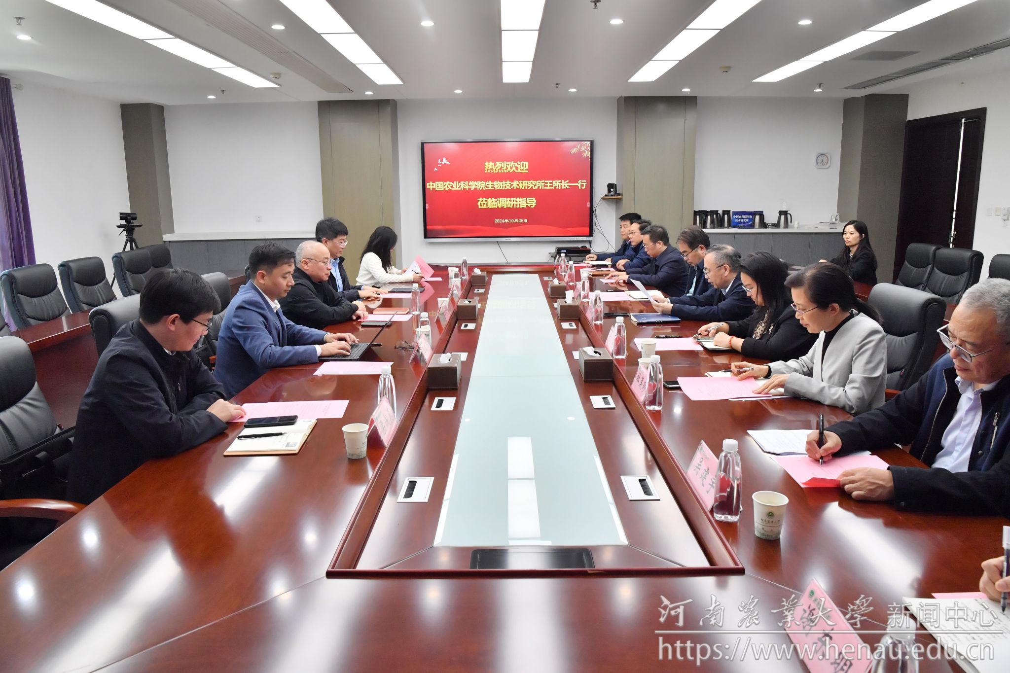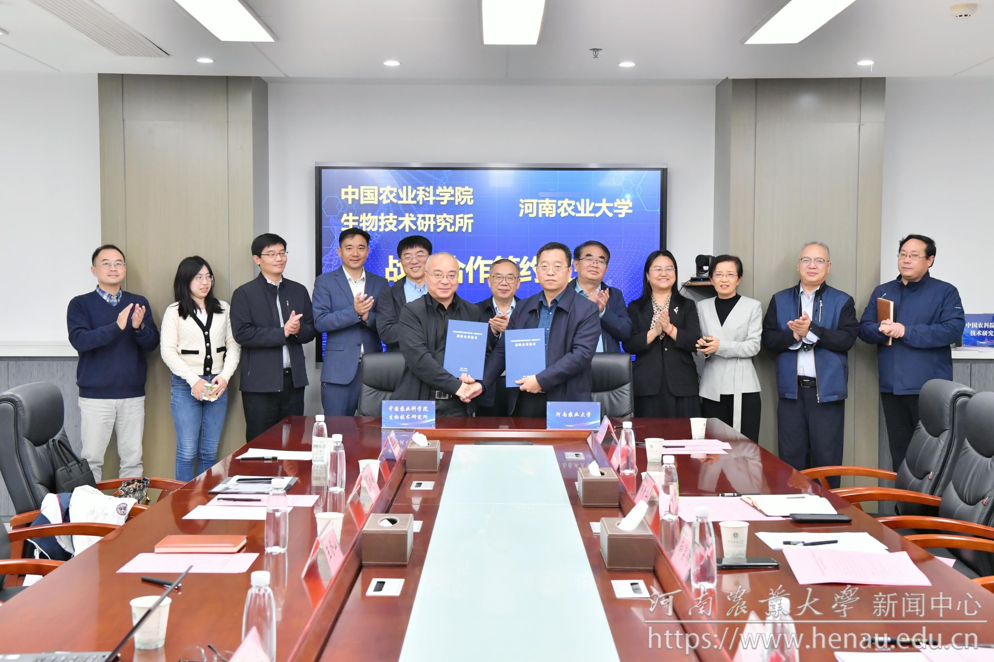 本网讯(通讯员 郭朋 图片 孙慧敏)10月25日,学校与中国农业科学院生物技术研究所战略合作签约仪式在龙子湖校区举行。中国现代农业联合研究生院基础与前沿交叉学部执行主任、原副校长尚富德,中国农业科学院生物技术研究所所长王登山、重大任务局副局长谷晓峰出席签约仪式。中国农业科学院生物技术研究所,党委研究生工作部、人事处、科学技术处、社会服务处、实验室与设备管理办公室、中国现代农业联合研究生院筹建办相关负责人,小蓝视频