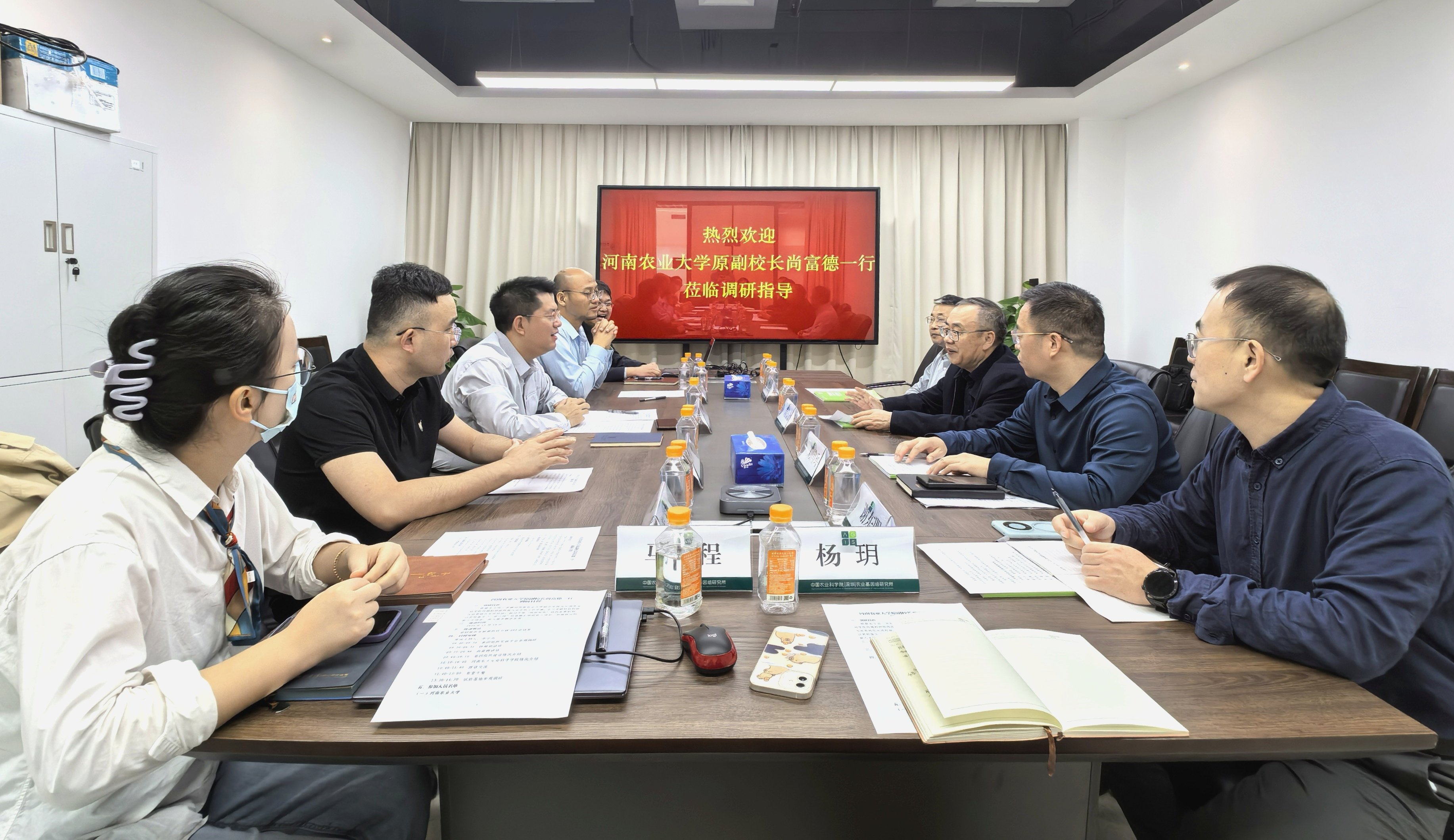 中国农业科学院农业基因组研究所副所长佟继旭、科技管理处副处长李小杰、组学技术研究中心研究员常玉晓、生态基因组研究中心副研究员李洪冉,小蓝视频 党委书记刘国兵、副院长张会勇及相关负责同志参加调研交流座谈会。