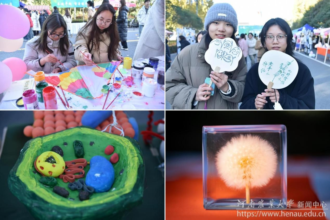 在欢快的节奏中,活力四射的舞者闪亮登场,激昂的音乐与优美的古典舞相得益彰,瞬间点燃了现场观众的热情。本届多彩生命文化节共设置了“生命之源”“生命之美”“生命之趣”和“生命之映”四个展区。 走进“生命之源”展区,标本定格,栩栩如生,每一片叶脉都如同岁月镌刻的精美纹路,承载着植物在时光长河中的故事,生物剖析,详细地展示了植物的内在结构,生言生语,感受科研,通过展示科研成果和科研过程,能体会到科研工作者们在探寻生命奥秘过程中的艰辛与乐趣,指尖曼妙,泥塑生命的手捏泥人环节,让同学们在动手过程体会生命真谛。“生命之美”展区,充满了自然与创意的气息。叶片拼接,生命焕彩,各种落叶被巧妙地拼接成一幅幅美丽的图案,展示了生命的无限可能,落叶留痕,脉动自然,体现出自然元素间奇妙的互动,绘创植物,妙笔生花,植物在同学们的笔尖跳跃,在纸上映出一幅优美的画卷。 在“生命之趣”展区,花间品茗,茶香四溢,各种香茶的展示与品鉴让人沉浸在茶香的世界里,酷爽啤酒,酣翻全场,小蓝视频 自主研发的独创啤酒品牌特邀全校师生共同品尝。舞香菌锅,热汗开颜,多样性微生物也来凑热闹,啤酒配火锅别有一番风味,展区现场,同学们排起长龙共同品鉴这份美味。除此之外,还设有以四季为主题的互动环节,成语接龙、活力投壶、你画我猜和解答谜语的小游戏提升师生对文化节的参与热情。走进“生命之映”展区,镜头定格,奇趣生命,通过摄影作品定格了一个个生命中的精彩瞬间,一草一木在镜头下都展现出强大的生命力量。植物知多少,各种植物知识的科普,让人们对身边的植物有了更深入地了解,充分体现了专业知识与人文文化的完美结合。这些丰富多样的展区内容,是学风建设的生动实践,也是探索书本与实践相结合教学模式的有益尝试,引领师生在趣味中畅游知识的海洋。