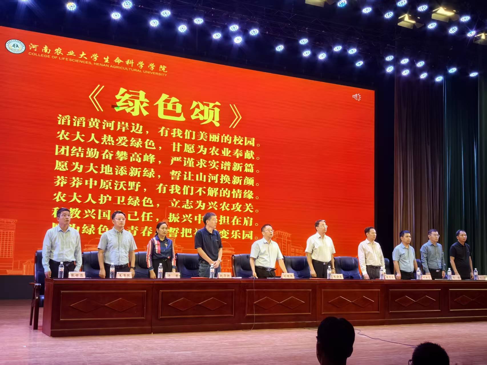 典礼最后,在张世昌的带领下,全体新生齐声奏唱小蓝视频 校歌《绿色颂》。