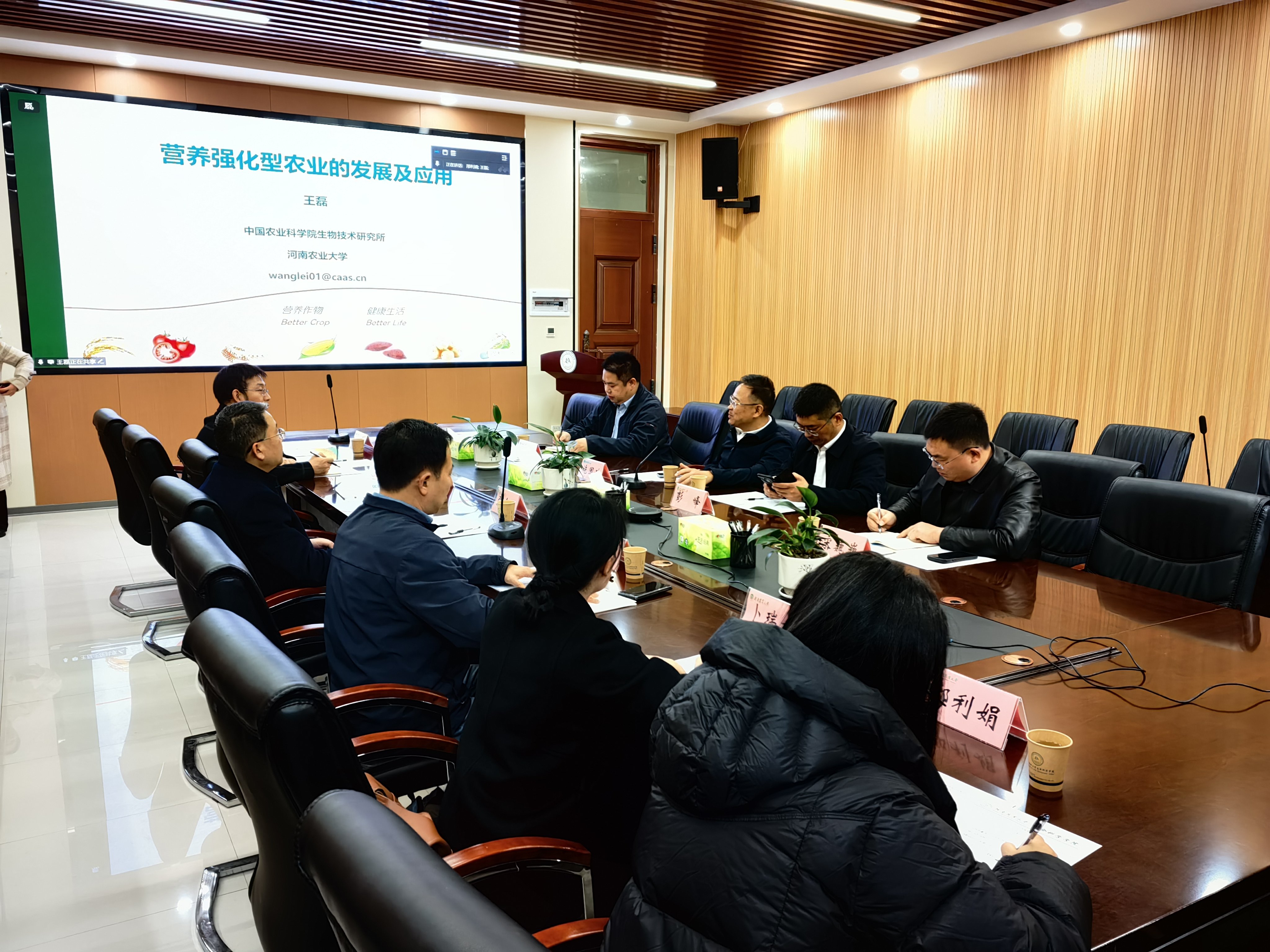 访问,就科技创新与成果转化开展交流对接。河南农业投资集团有限公司副总经理、黄泛区实业集团党委书记、董事长施国政,黄泛区实业集团总经理彭峰,副总经理梁欢,黄泛区农业发展公司董事长宋巍巍参加会议,校兼职教授、中国农业科学院生物技术所王磊,院长张会勇,副院长赵华新、袁志良、赵月出席会议,学院教师代表参加会议。会议由张会勇主持。