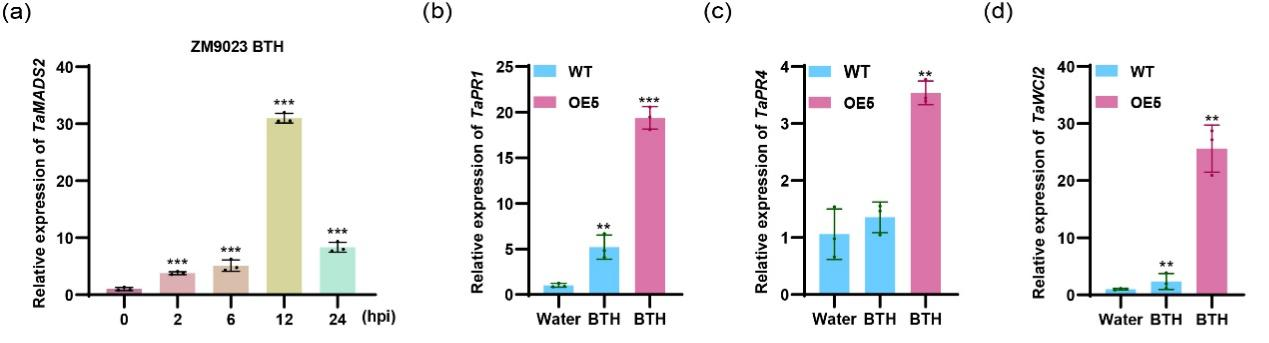 图3. TaMADS2受BTH诱导并增强防御基因的表达