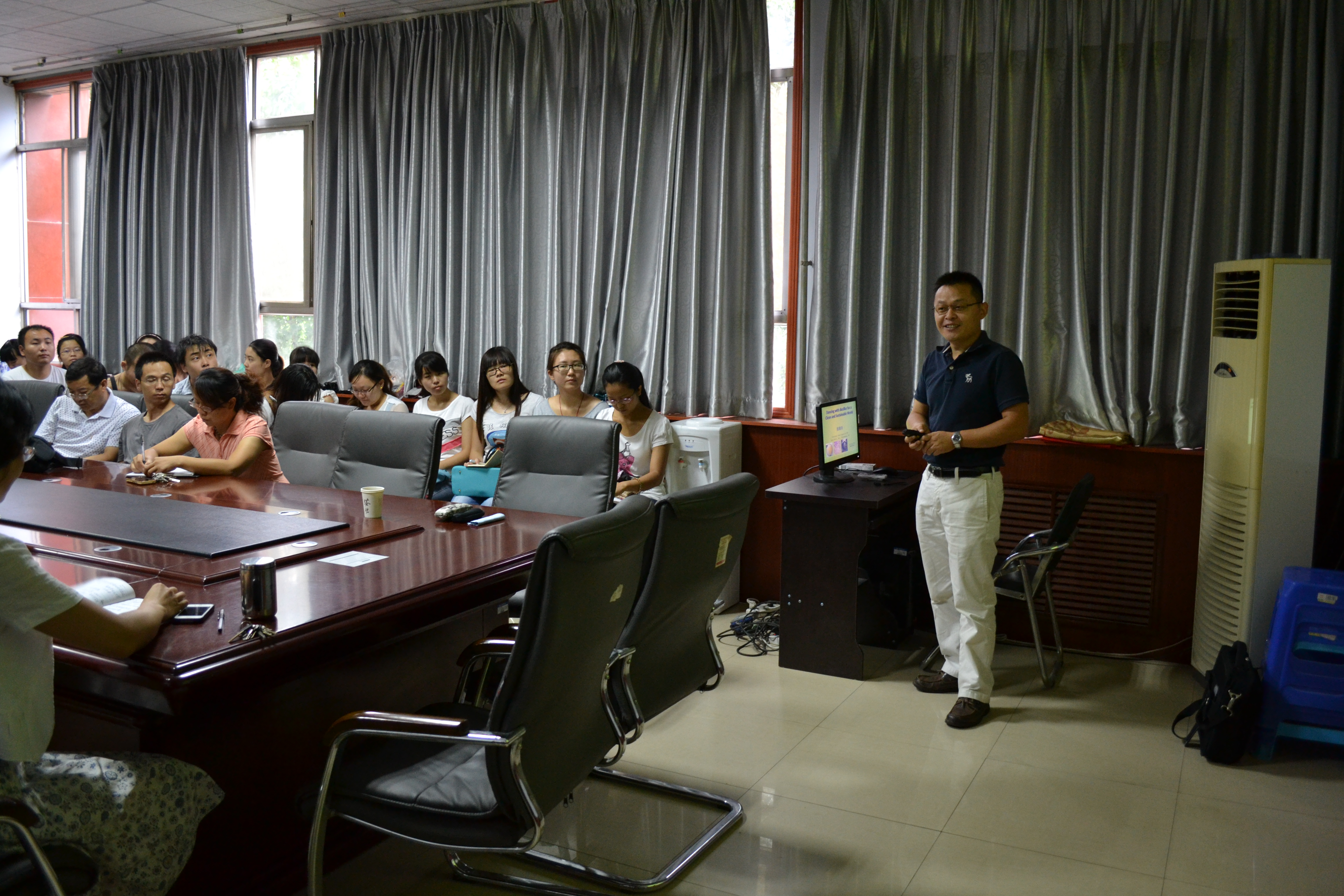 师生做了题为“Dancing with Bacillus for a Clean and Sustainable World”的学术报告。学院负责人、部分老师和研究生参加了报告会。