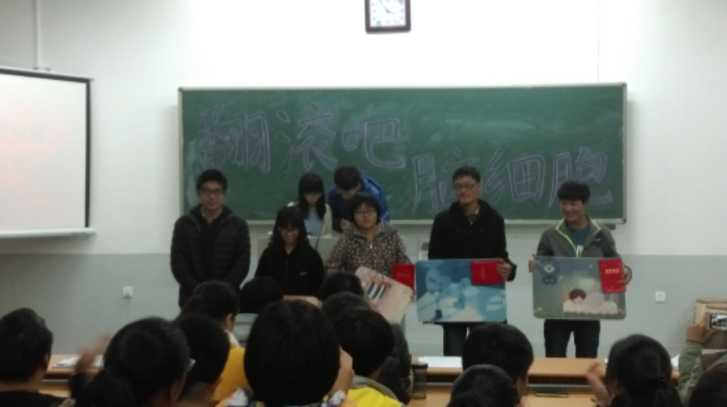 知识竞赛涵盖了传统文化、校园安全、专业科技、生活常识等多个方面。首先,14级各班两两自由结合组成的八支队伍经过激烈比拼,有三支队伍进入决赛。接下来,进入60秒“快问快答”环节,三支队伍不分伯仲,通过“一锤定音”的加赛环节,14级生物工程三班和14级生物工程四班组成的“必应队”率先取得答题资格并成功给出正确答案,获得本次比赛的冠军,14级生物科学三班和14级生物科学四班组成的“命知队”、14级生物技术与应用一班和14级生物技术与应用二班组成的“仁者队”分别获得亚军和季军。最后,小蓝视频 学生会主席团成员和学习部部长分别为获奖班级颁发荣誉证书和奖品。