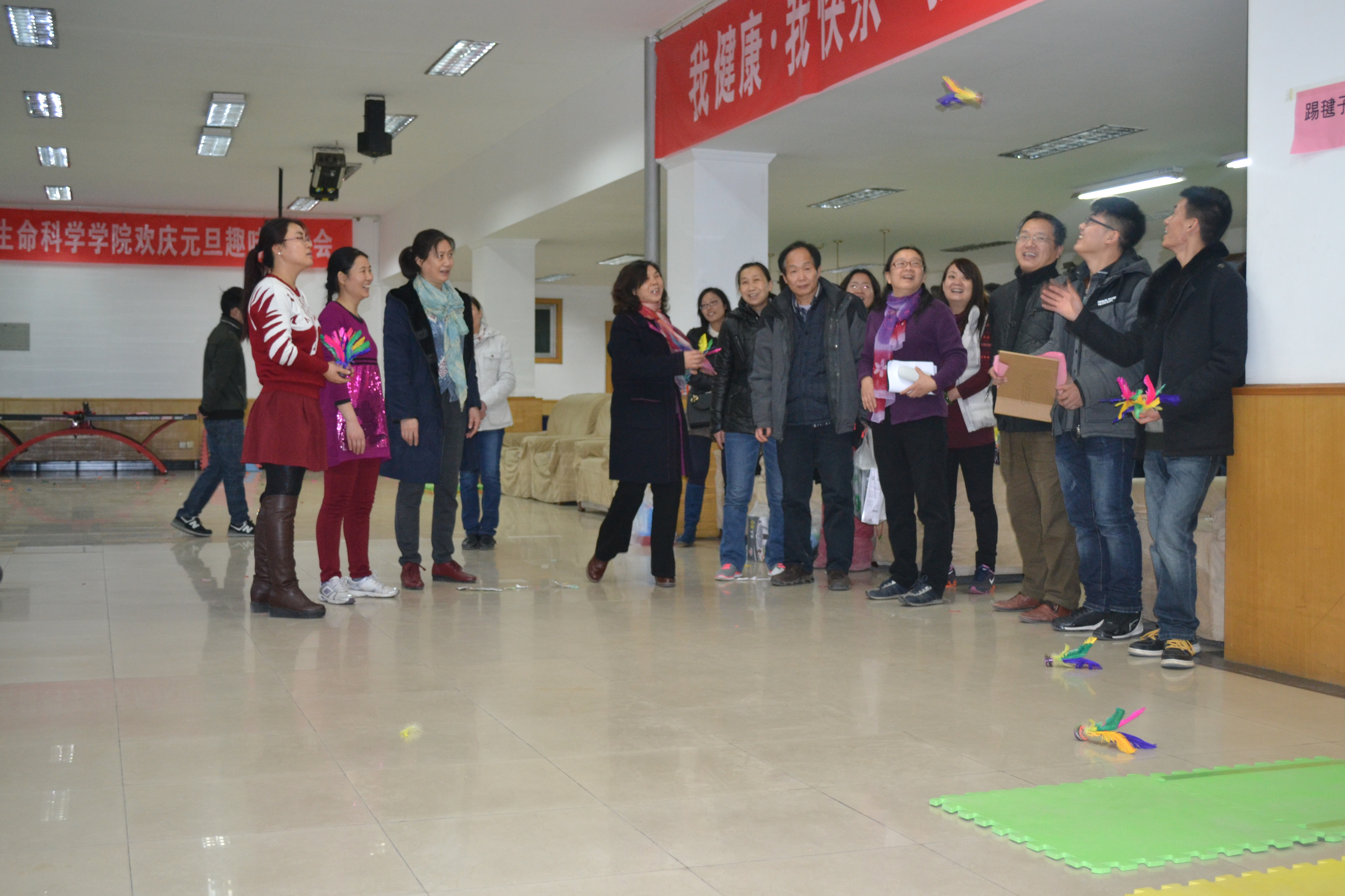 12月30日下午,小蓝视频 在学校教职工活动中心开展了“我健康 我快乐 我为农大做贡献”欢庆元旦趣味活动。校党委常务副书记李少兰到比赛现场看望了参加活动的教职工。在齐心协力、搭桥过河、投掷飞镖、夹乒乓球、踢毽子等项目的比赛中,学院教职工积极参与,努力竞赛,在锻炼身体的同时,增进了交流,提高了团队协作能力。(文/马文瑛)